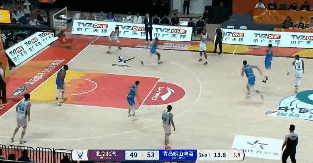 第二节比赛中,赵嘉义底角三分再中,半场三分3中3,青岛半场56-49领先北京。