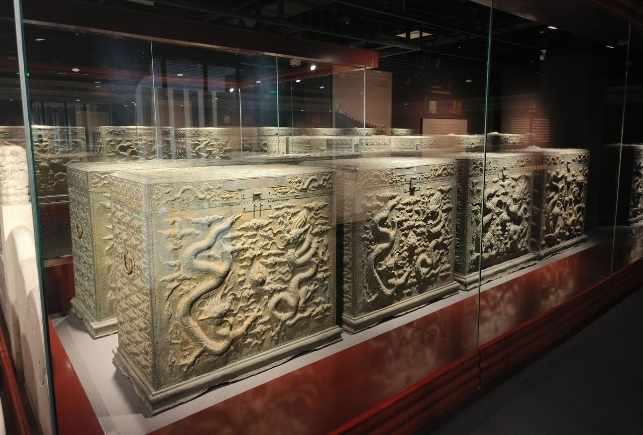 现在,经常使用金柜存放重要的物品,而在古代,收藏重要文献或贵重物品的柜子叫“金匮”,拼音为jīn guì,材质并不是金的,而是铜制的柜子,有的带有鎏金。“金匮”一词最早见于汉代文献,而在北京的“中国第一历史档案馆”,就能看到明朝铸造的19座“金匮”,这些大柜子内部使用防腐的楠木和樟木材料,外面裹上鎏金铜皮,刻有云龙图案,专门用来长期保存各种重要的档案。