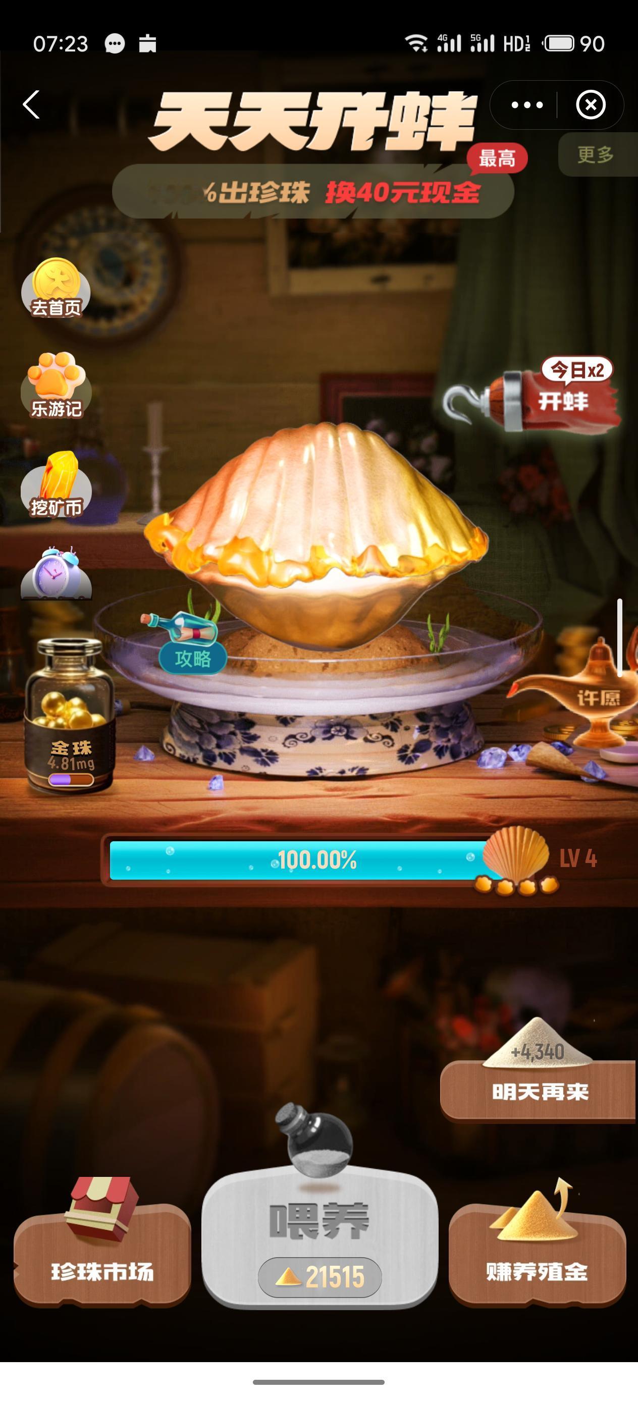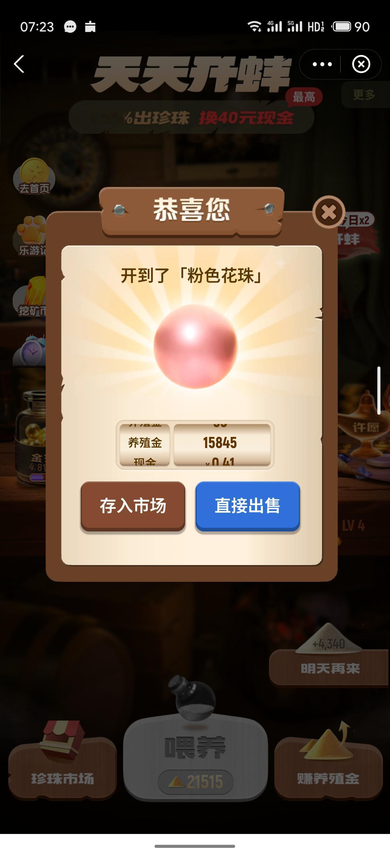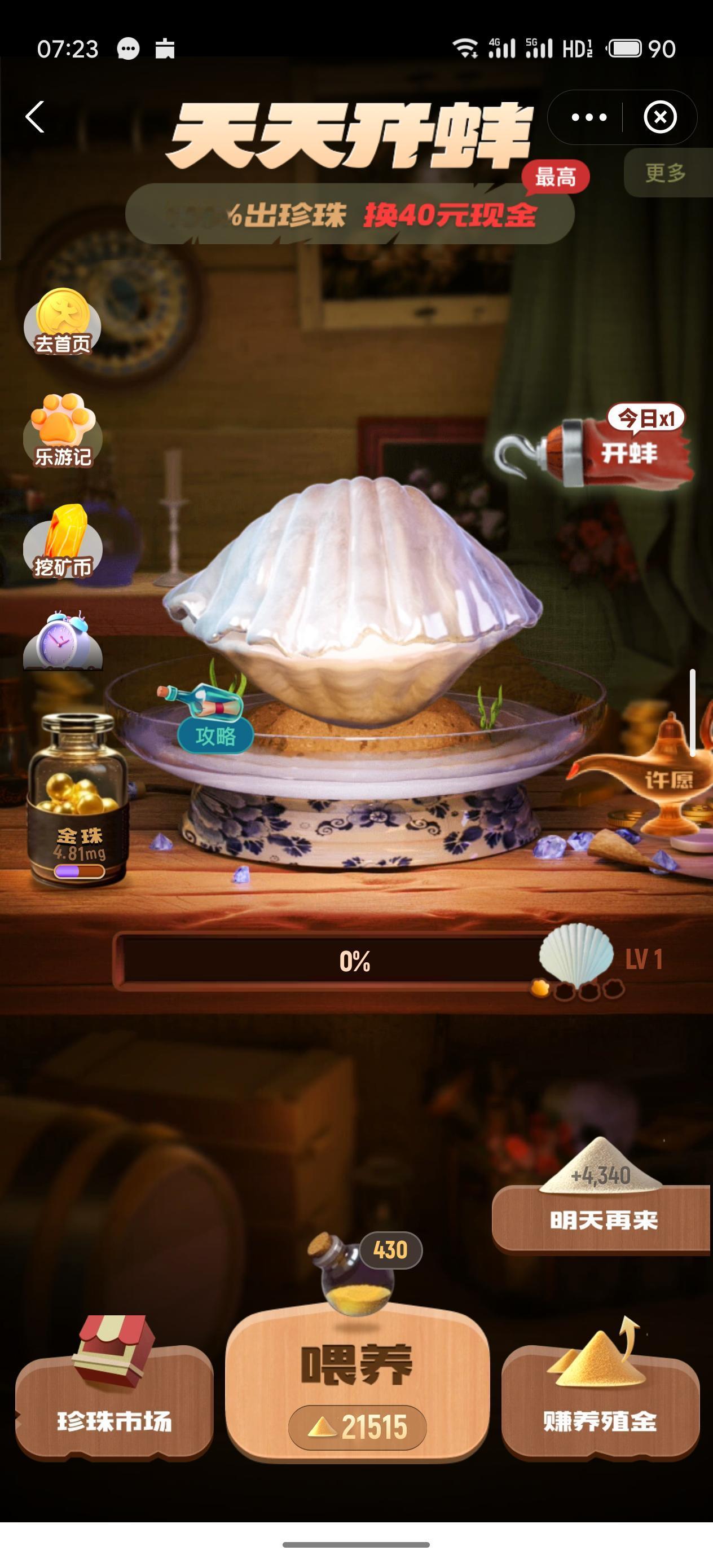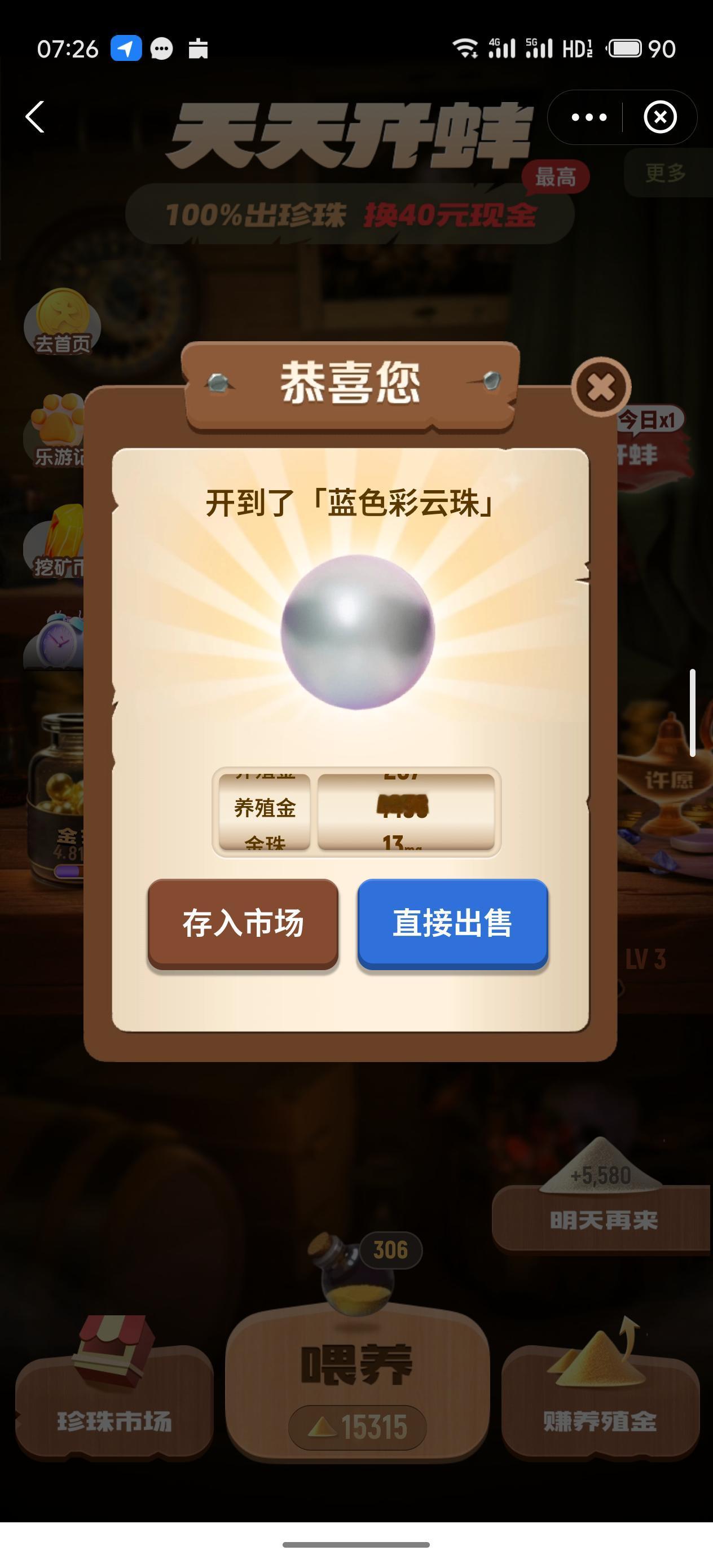今天看着养殖金比较充足 就尝试了一把直接喂养到LV4 854-430=424 光是戳屏幕都要崩了 太单调了,戳400多下 还好,开出粉色花珠 然后实在是没勇气了 就再开一个LV3 开出一个蓝色彩云珠