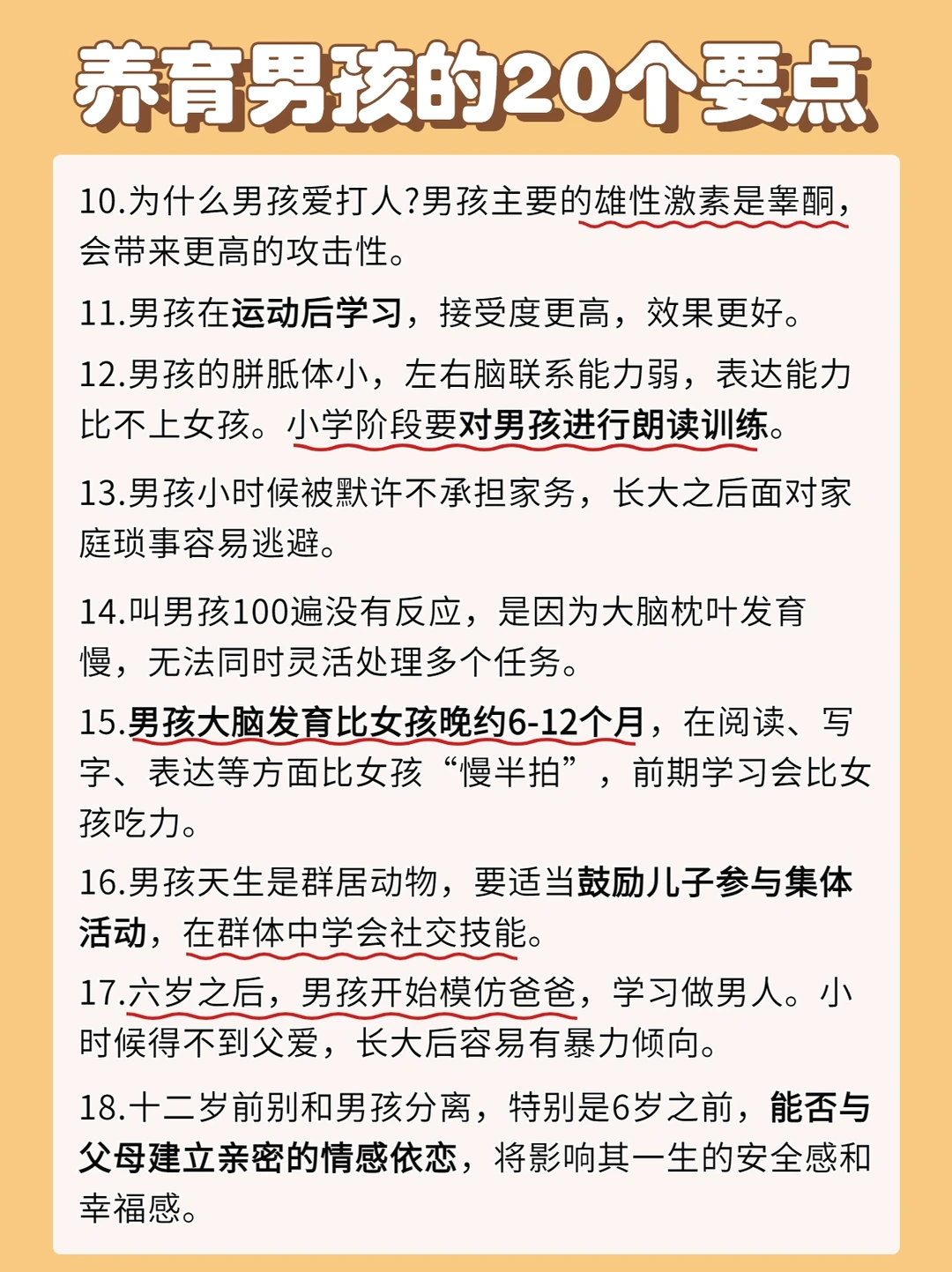 [一R][二R]男孩的胼胝体小,左右脑联系能力弱,表达能力比不上女孩。小学阶段要对男孩进行朗读训练。