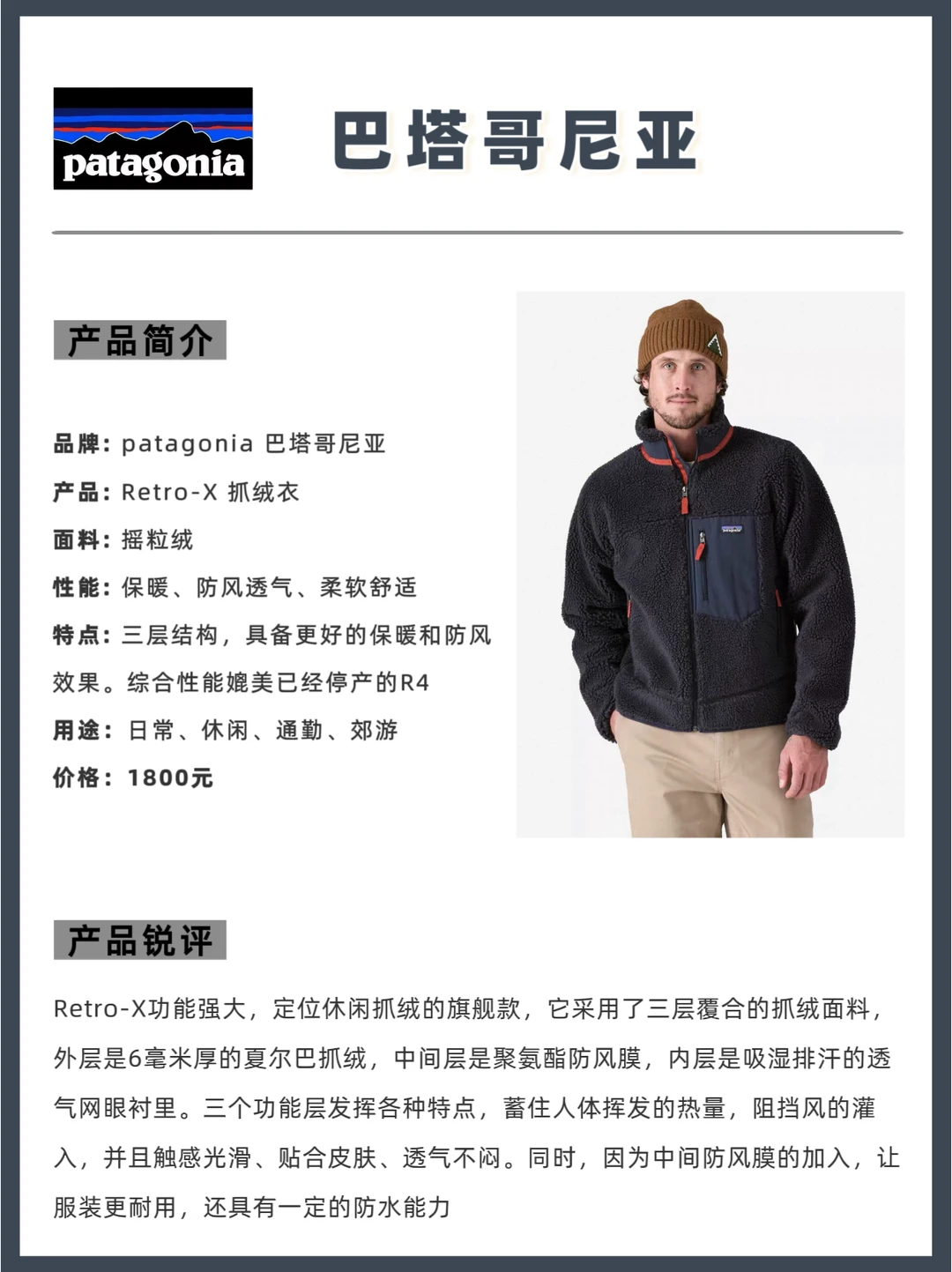 🟢 3. patagonia Retro-X|防风旗舰,城市户外两相宜