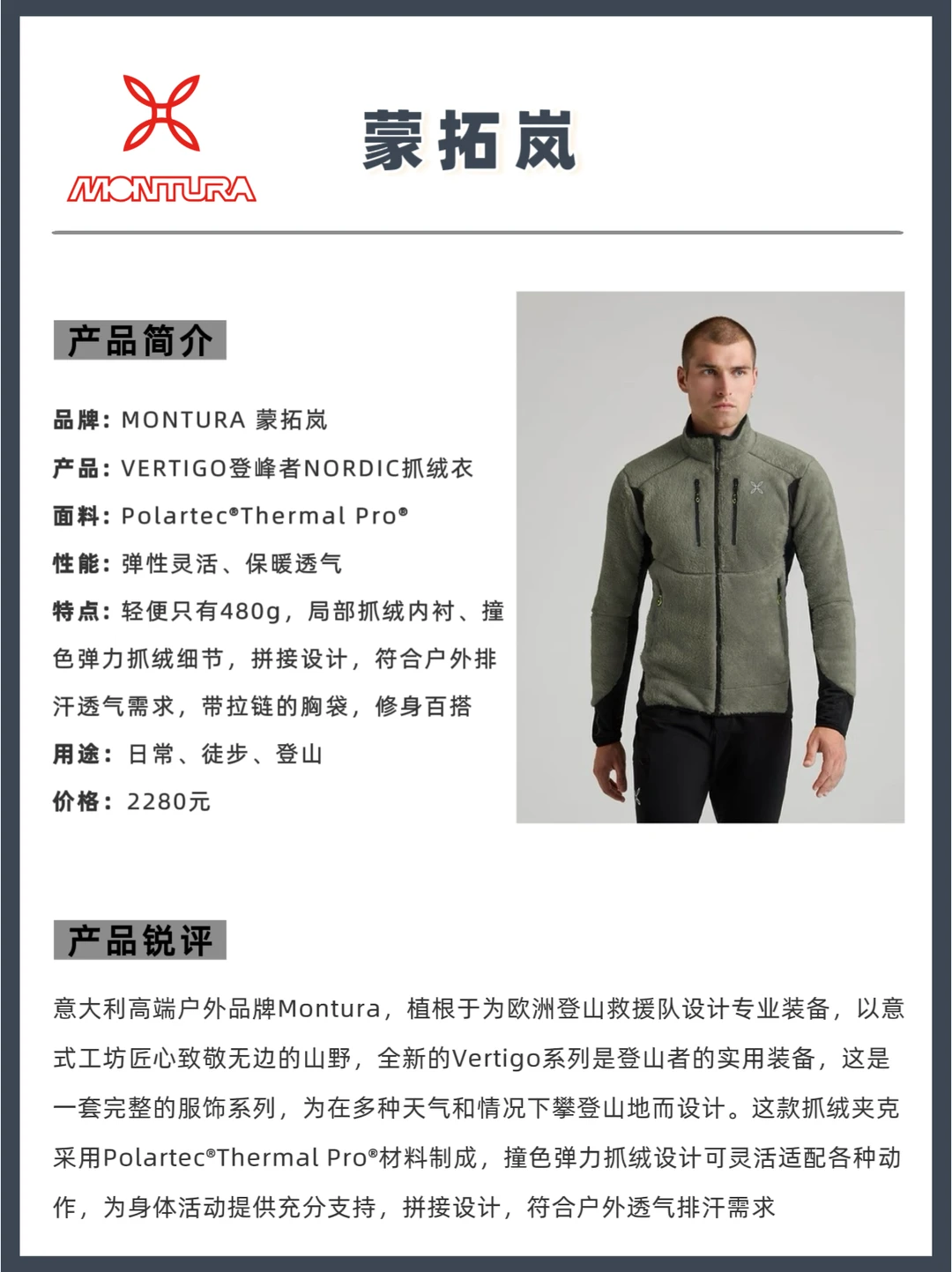🔵 2. MONTURA 蒙拓岚 VERTIGO|轻量化登山利器