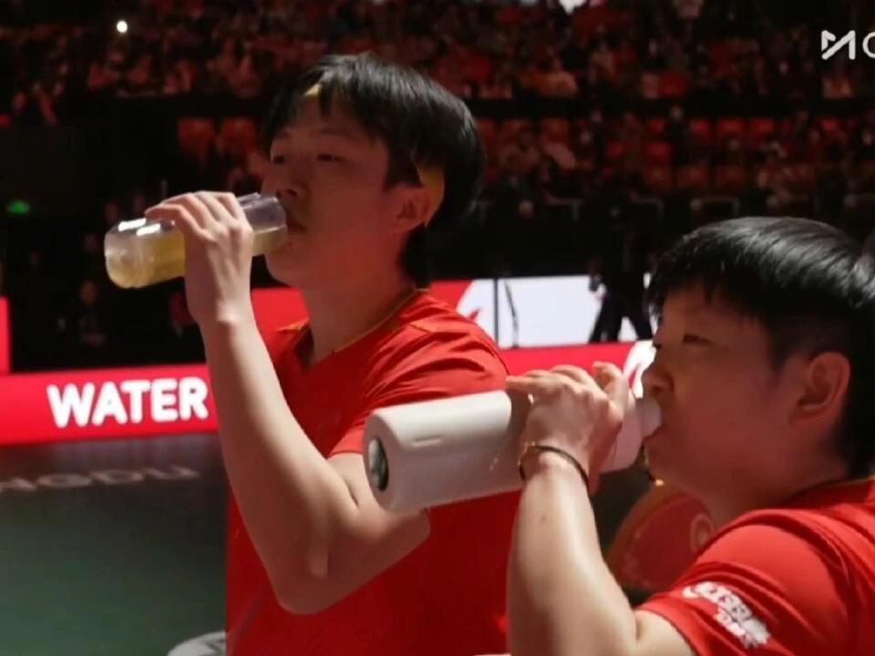 两个人喝水神同步,肖指导带着两小只,真的是安心,又是同步的动作和节奏! 肖指导带着两小只勇闯混双,一点不用担心,他们俩都是老搭档了,根本不用操心,等着喝彩和祝贺声就行了! 现在的混双还是要靠莎头组合,毕竟莎莎和头哥搭档是混双的老祖,相当有权威,特别棒的两小只,期待值满满的!