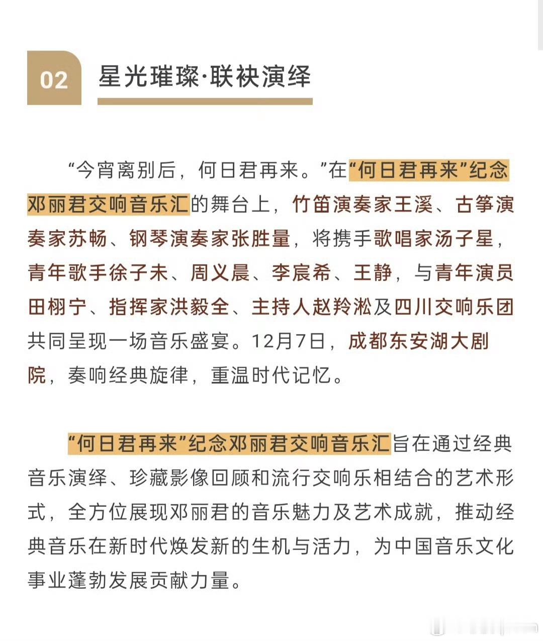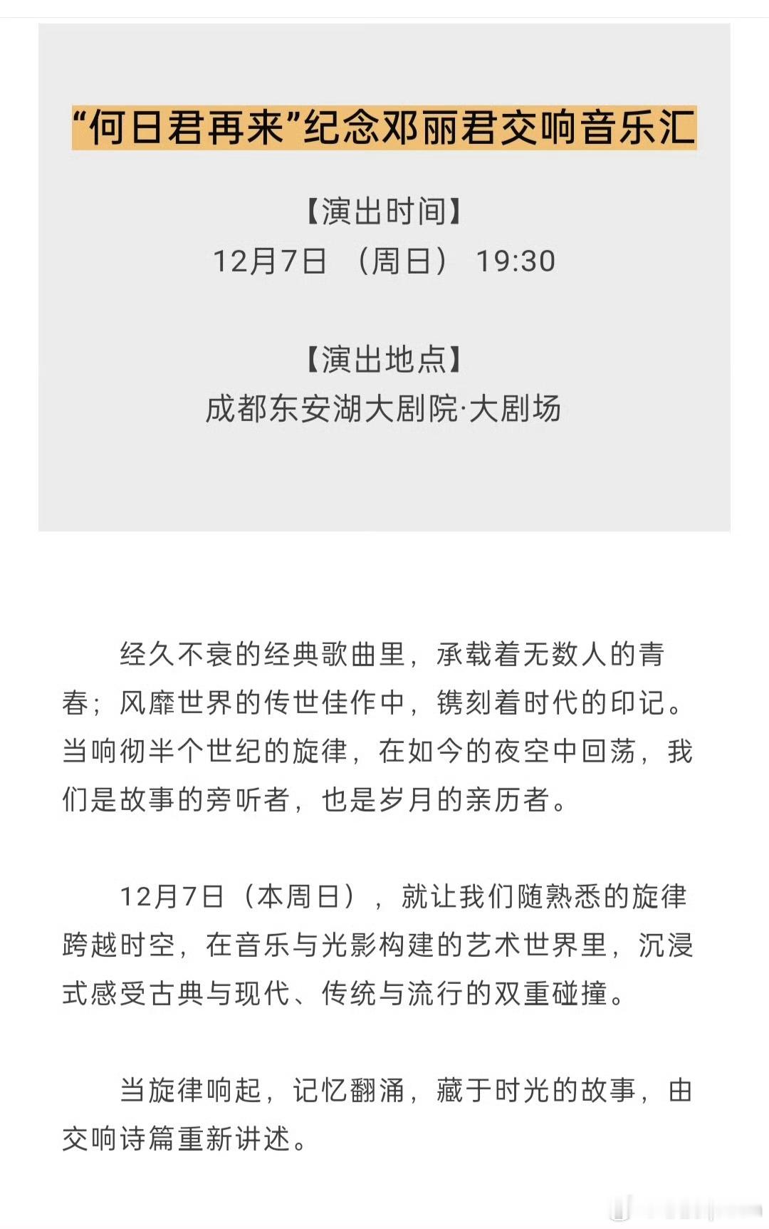 田栩宁 田栩宁正式官宣出任东安湖音乐季开幕式及邓丽君主题交响音乐汇讲述人,经典旋律搭配全新讲述,这场视听盛宴别错过!