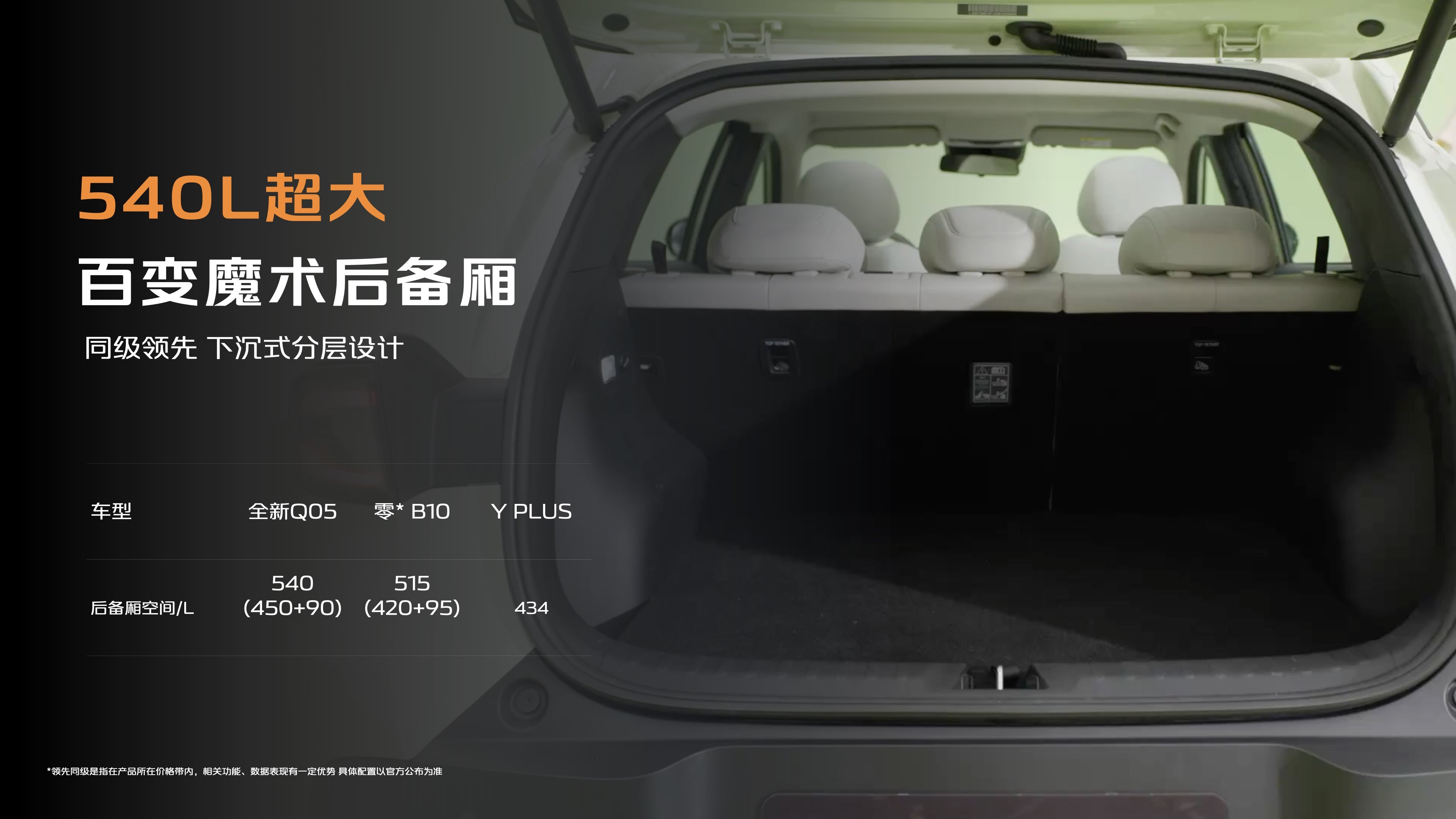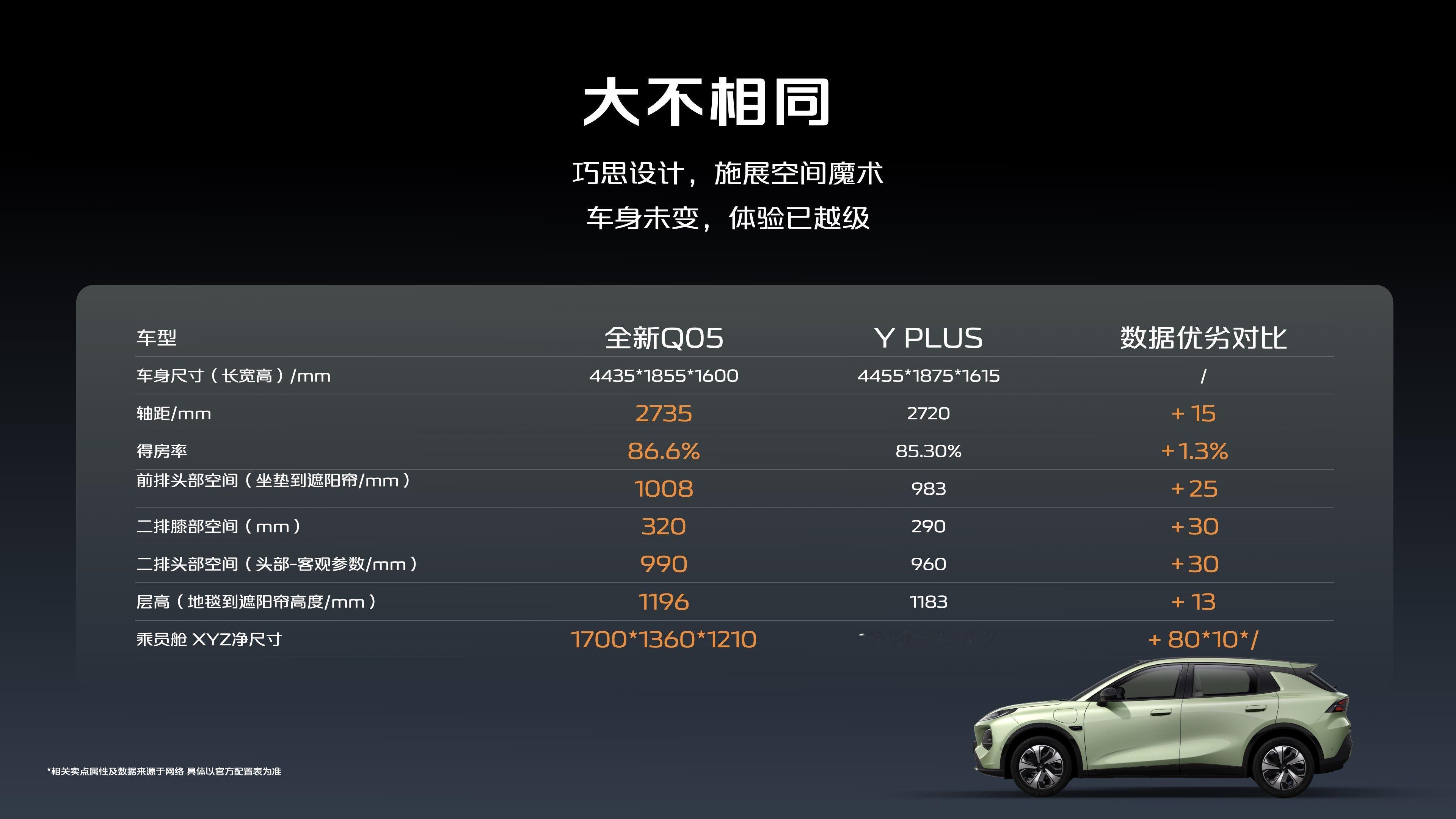长安启源全新Q05空间体验:2735毫米轴距,前排头部空间1008毫米,二排腿部空间320毫米,得房率86.6%。还有540L后备箱和1380L全部空间,以及90L下沉空间。感觉如何呀?