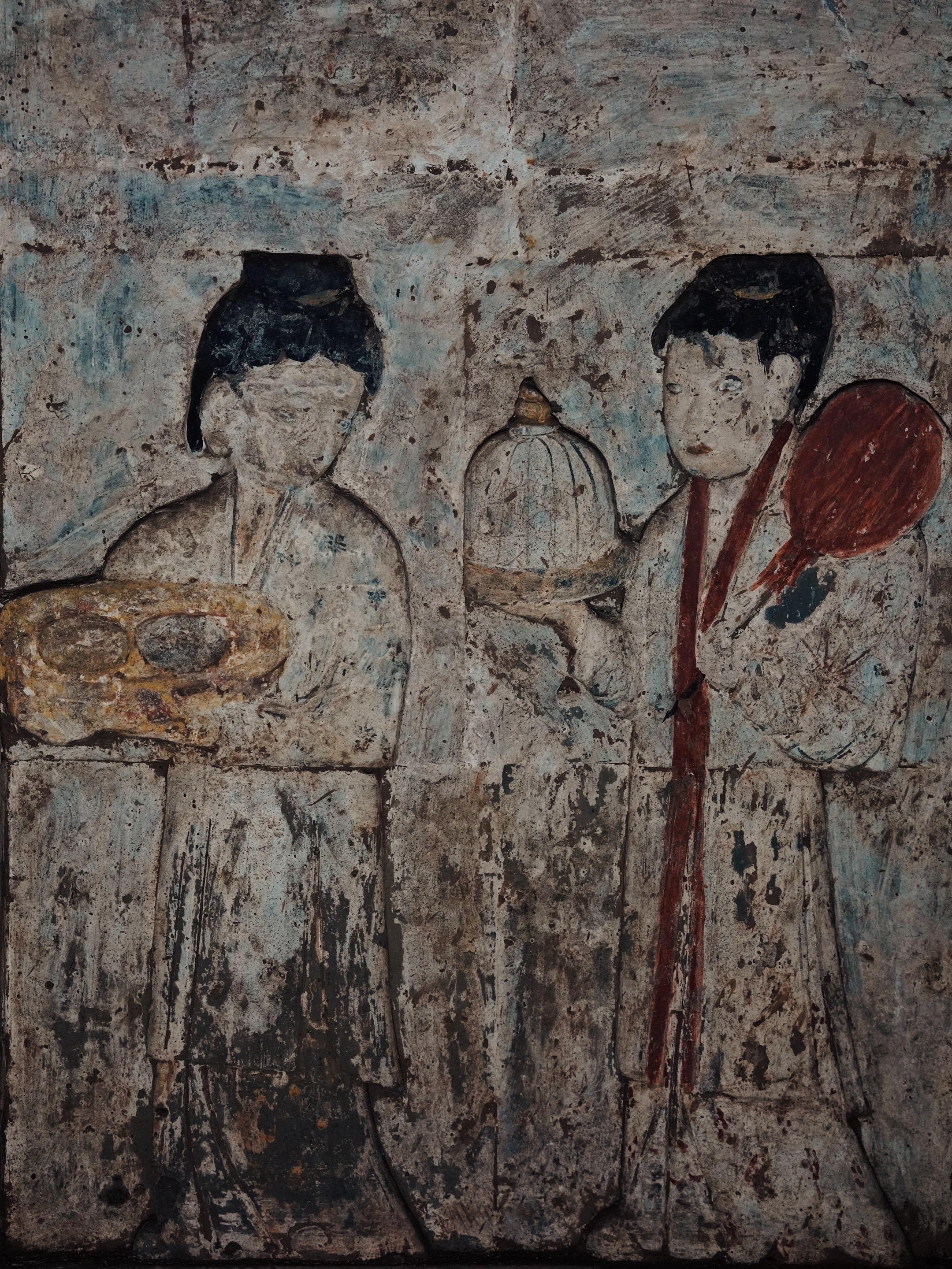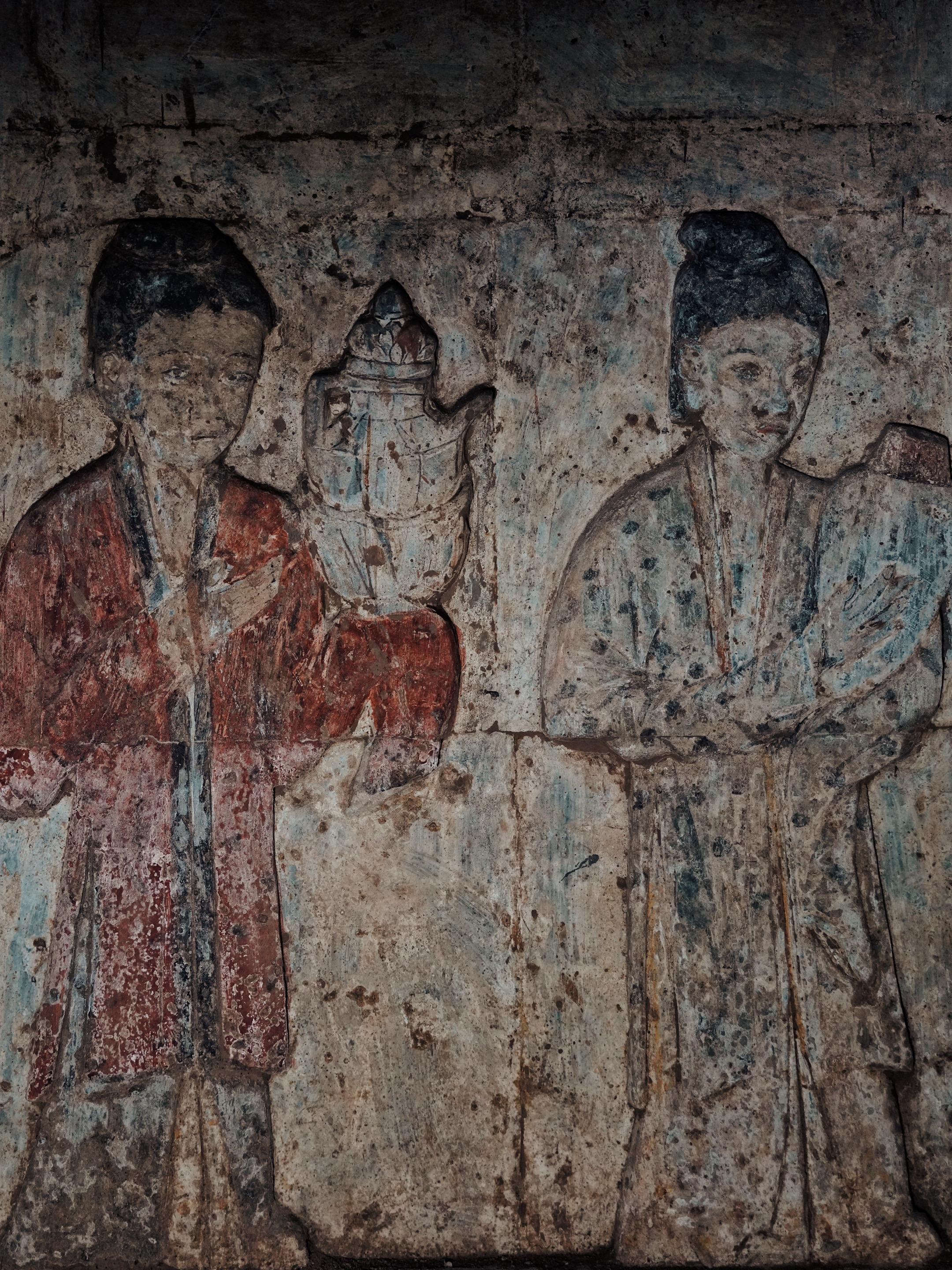 山西汾阳当年都是金国的领土,东龙观M2号墓,就是一座金代王氏夫妇的古墓,墓主人的身份或是土豪,或是乡绅,墓主人像用浮雕的,肯定不是普通老百姓