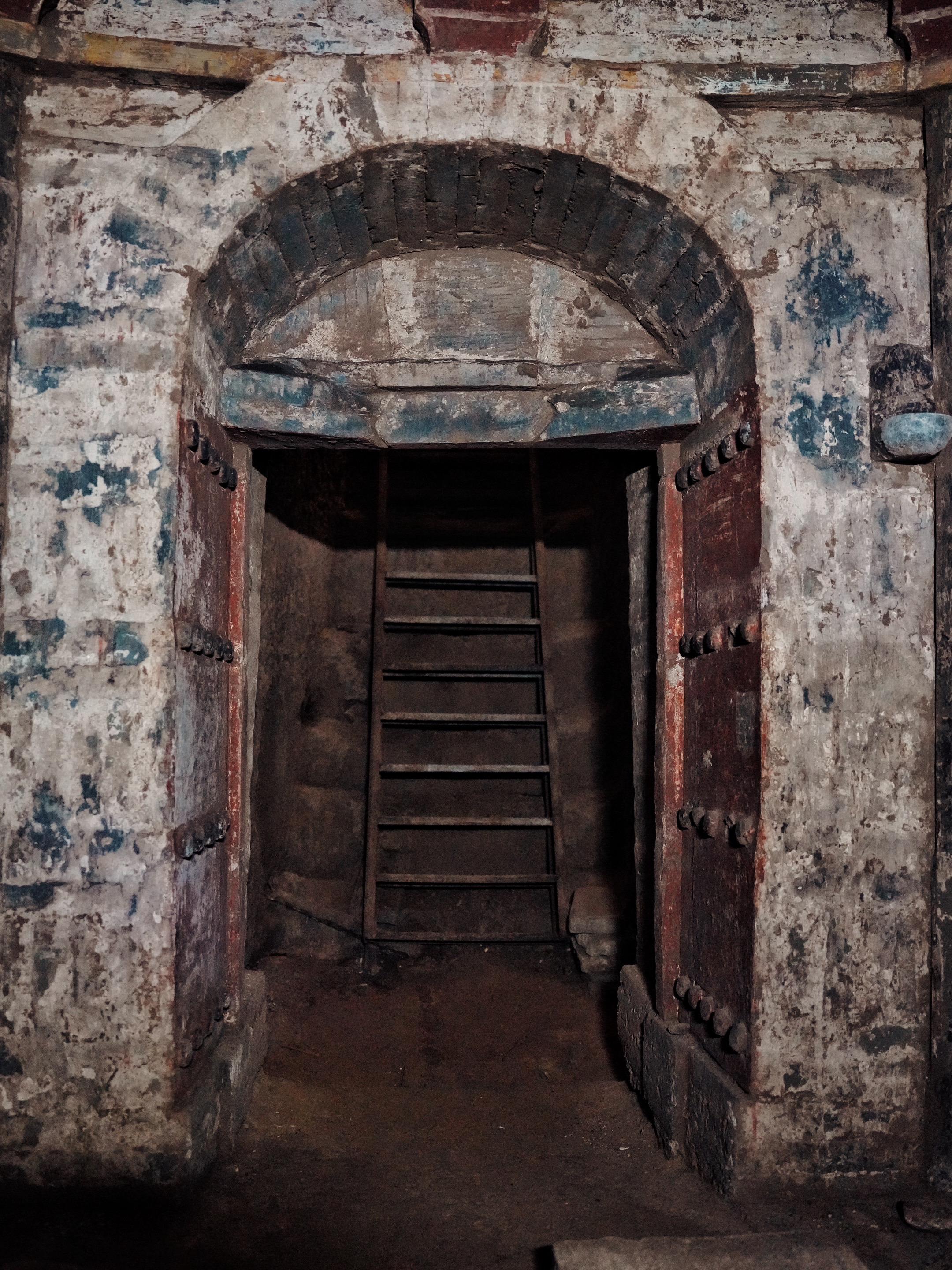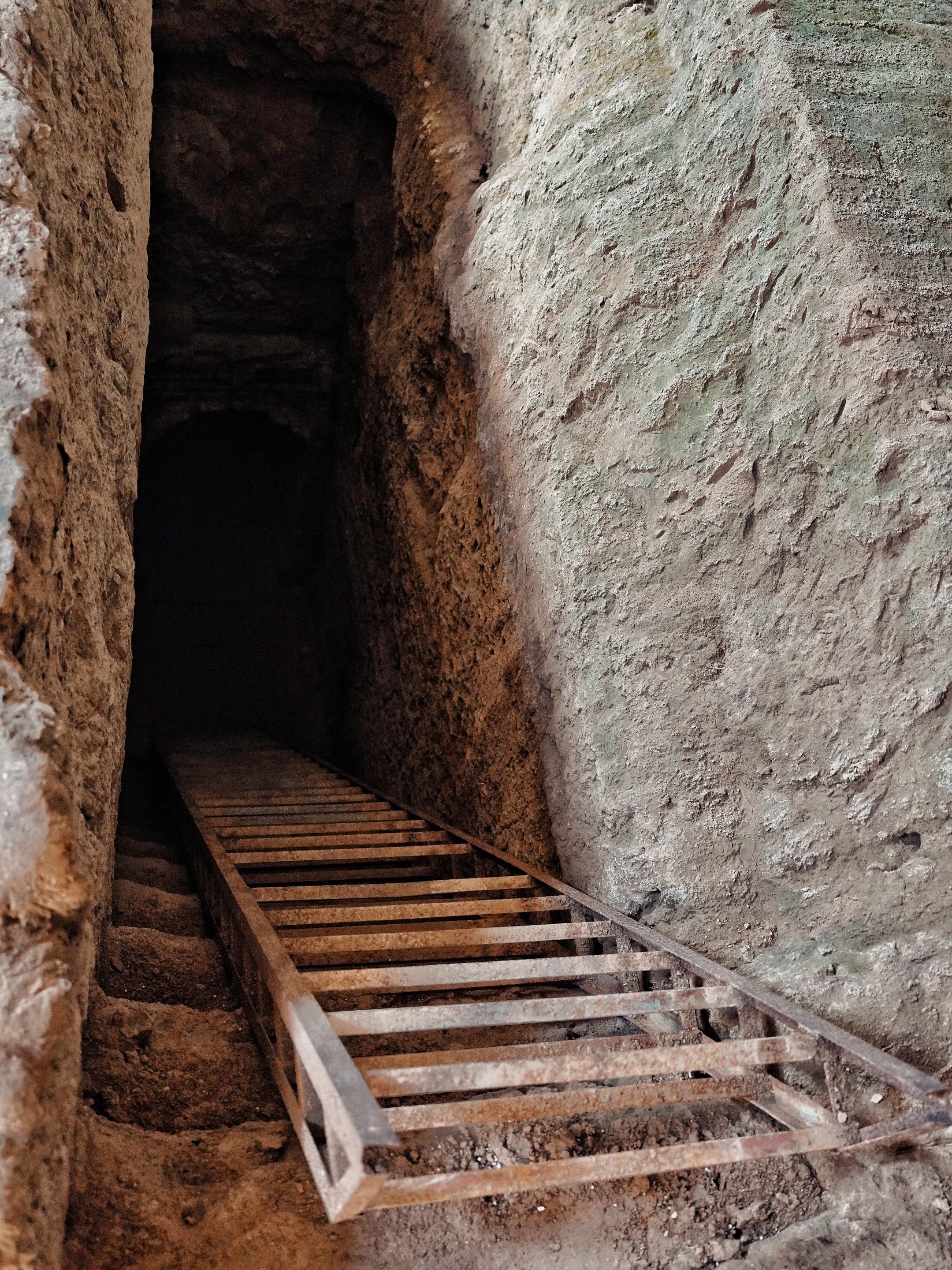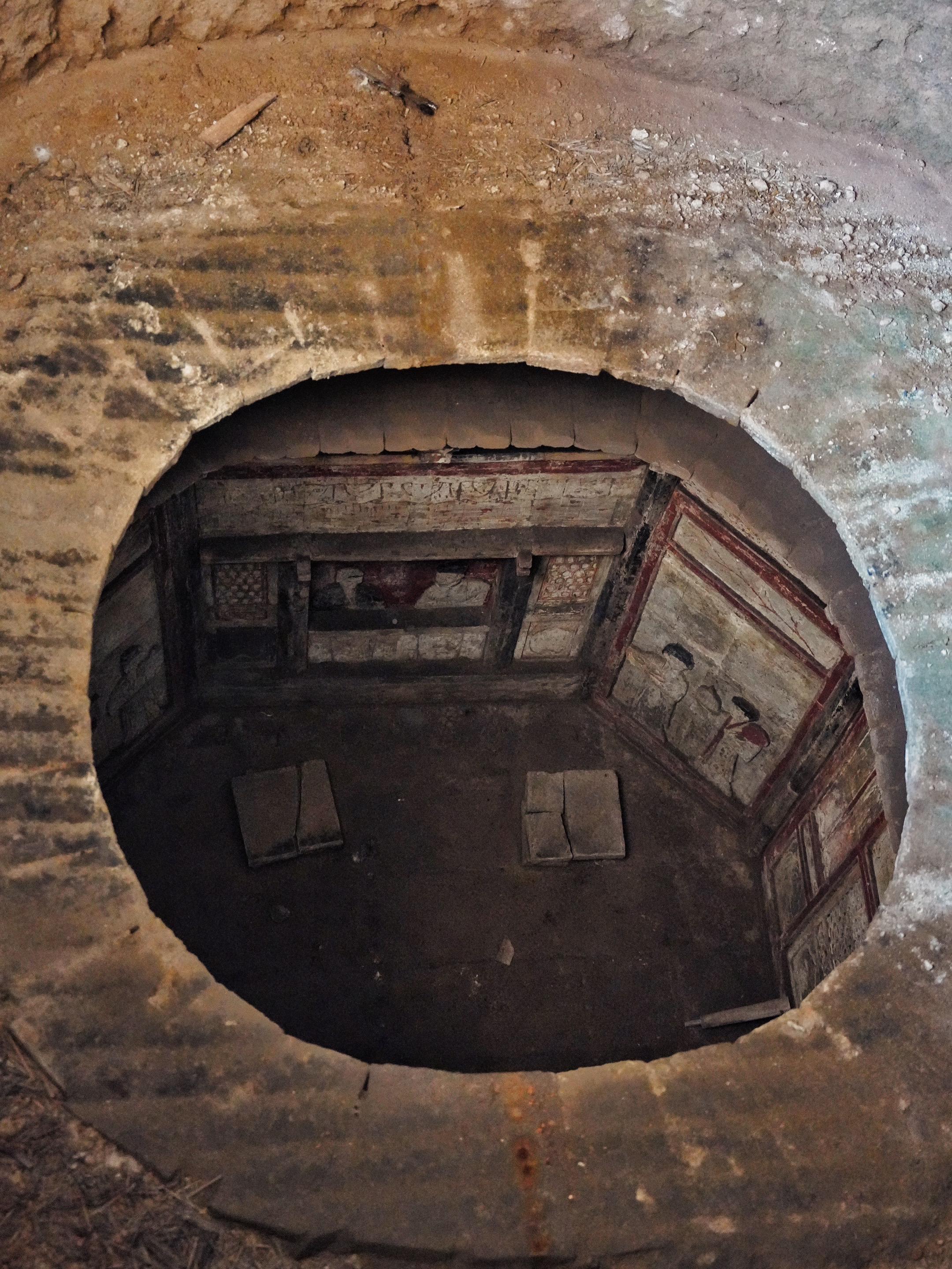 我个人还是比较喜欢这种比较“野”的探墓方式,头上挂着相机,手里提着手电筒,手脚并用地“爬”进了800多年前的金代古墓,真实的古墓就该是这个样子,没有照明,没有监控,没有湿度计,摸黑进入墓道口,迎面而来的就是那股子土腥味,打开手电的一刹那,就与墓主人夫妇“六目相对”,简直太刺激了