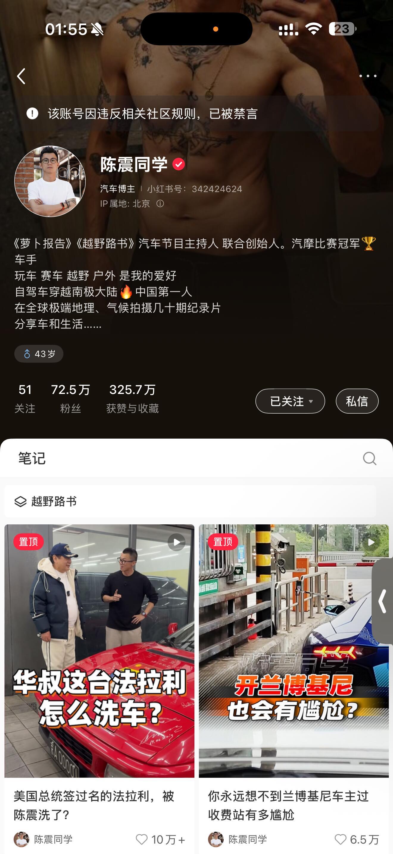 陈震多平台被禁言车圈顶流陈震同一时间被各大平台禁言难怪震哥主页照片说想休息了