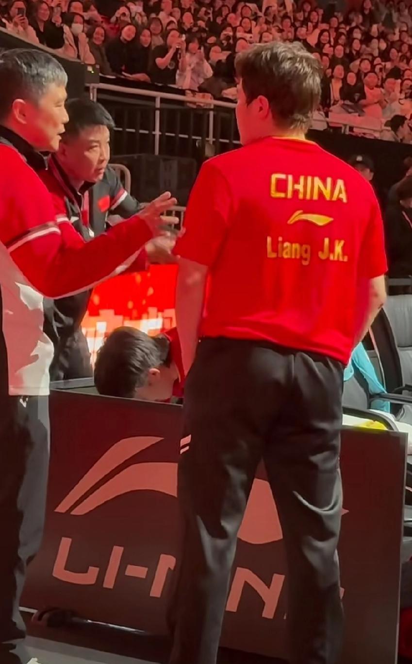 混合团体比赛, 是男、女运动员一起, 这样是强起来更强, 我们国乒就是强强联合。 梁靖崑一盘丢了两分输给小勒布伦, 但是也不影响后面的成绩。 但是梁靖崑需要总结的地方也有很多。 他一比赛结束, 孙颖莎可能也觉得他肯有点失落了, 主动帮梁靖崑复盘比赛。 过一会后刘志强教练也来了, 看他手也比划一阵子。 王楚钦比赛结束也找了梁甜甜复盘, 因为楚钦也是刚刚与大、小勒布伦交手完,可能也是发现了他们之间的问题。 有问题大家一起解决, 劲往一处使, 加油中国队。