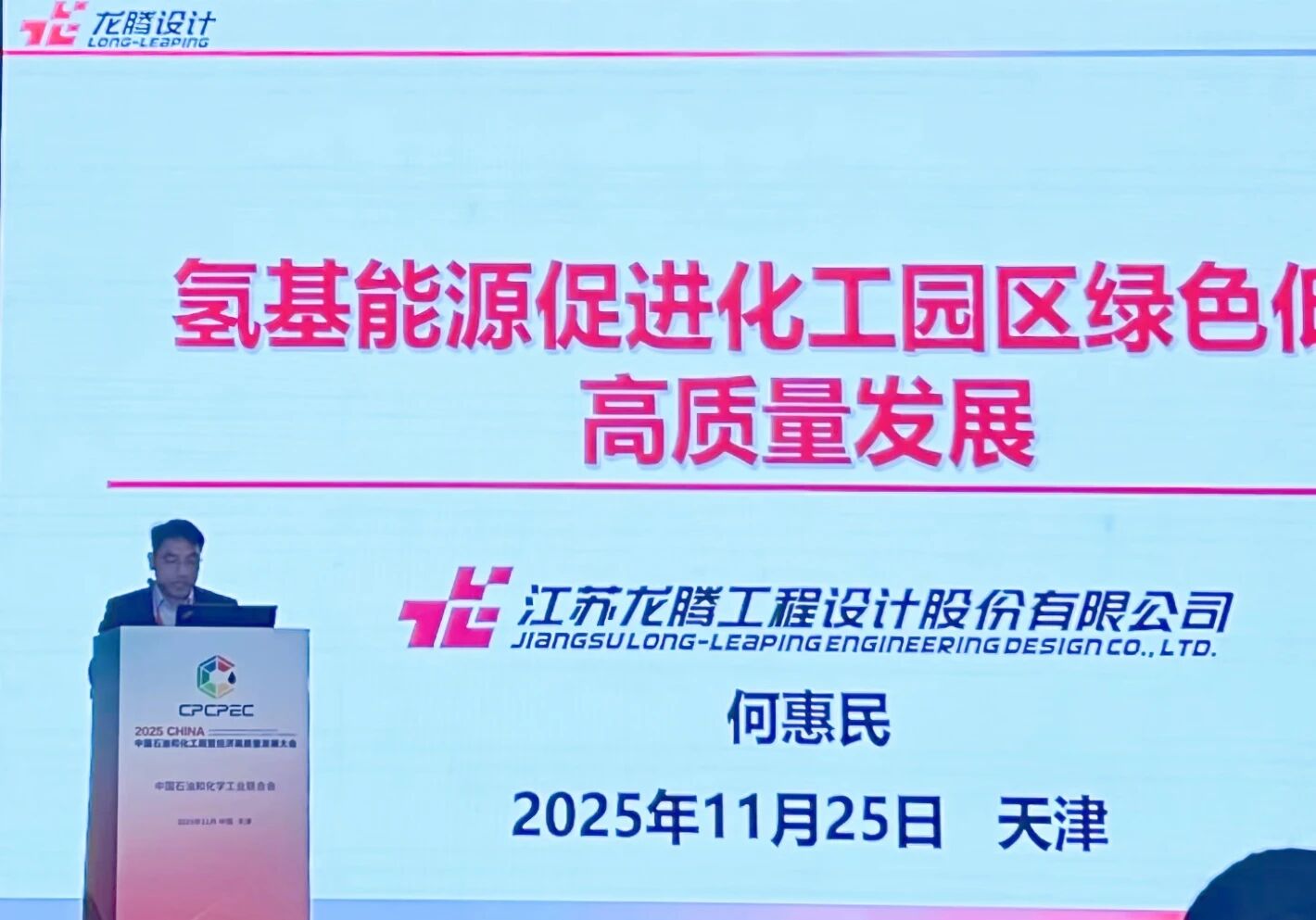 11月25日,由中国石油和化学工业联合会(简称中国石化联)主办的2025中国石油和化工民营经济高质量发展大会(CPCPEC)在天津市滨海新区举行。大会以“新蓝图、新动能、新飞跃”为主题,旨在贯彻落实党的二十届四中全会精神,统一思想、坚定信心,推动“十五五”石化民营经济高质量发展。作为国家专精特新“小巨人”企业,江苏龙腾工程设计股份有限公司(以下简称“龙腾设计”)受邀参会,总经理助理周舟、化工设计研究所所长何惠民出席会议并作专题报告,与行业分享龙腾设计高质量发展实践经验。
