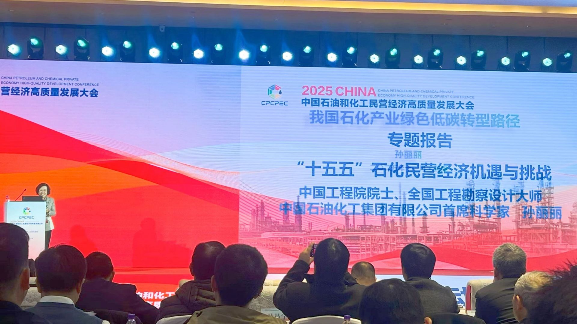 国务院发展研究中心企业所副研究员向辉,中国工程院院士、中国石化首席科学家孙丽丽分别以《“十五五”时期的经济发展目标与民间投资》《我国石化产业绿色低碳转型路径》为题作主旨报告。