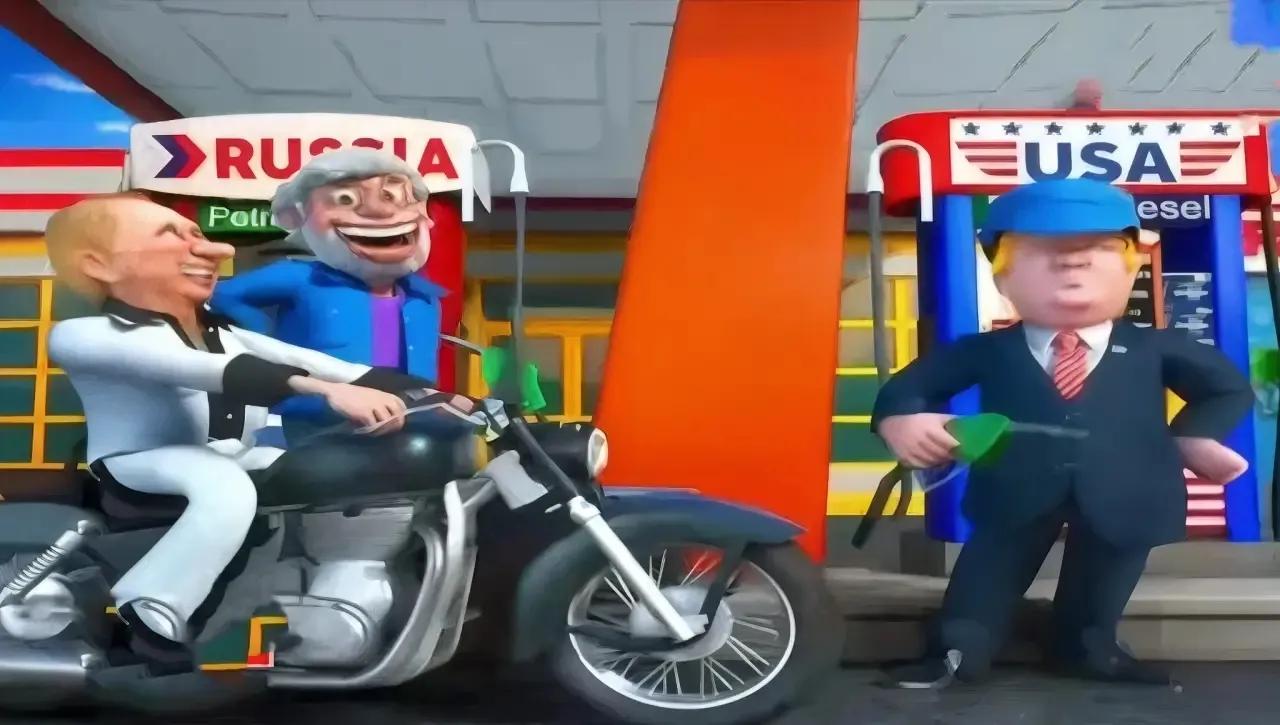 俄罗斯普京12月4日抵达印度进行访问,印度总理莫迪亲自在登机口迎接普京。身着传统纱丽的舞者表演了欢迎仪式,莫迪还向普京赠送了一本《薄伽梵歌》。可以说,印度给足了普京面子,也是在向西方表明印度不会屈服于西方(主要是美国)的压力。 而在普京抵达印度首都新德里之前,印度电视台“今日印度”播出了一部不同寻常的动画片——俄罗斯总统普京和印度总理莫迪以宝莱坞风格的老电影配音演员身份出现。这段视频迅速在社交媒体上走红,并成为当地的热门梗。动画片中,普京和莫迪骑着一辆带边斗的摩托车,唱着一首流行的印度友谊歌曲。背景中石油钻井平台一闪而过,随后出现了俄罗斯的S-400防空导弹。 高潮部分是两个加油站的场景,一个标着“俄罗斯”,另一个标着“美国”。美国总统老特站在标着“美国”的加油泵前,手里拿着油枪,仿佛在说:“莫迪,随便挑吧,这是你的油。”漫画中的莫迪根本就没看老特,而是在标着“俄罗斯”的加油泵前给摩托车加满了油,抓起老特的帽子,然后和普京一起悠然自得地驾车离开了。老特仍然站在加油泵前,嘴唇紧抿,一脸不悦。