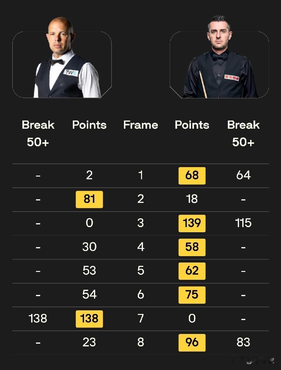 英锦赛4强出炉,特鲁姆普、尼尔·罗伯逊、墨菲、塞尔比入围。张安达3-6不敌墨菲,