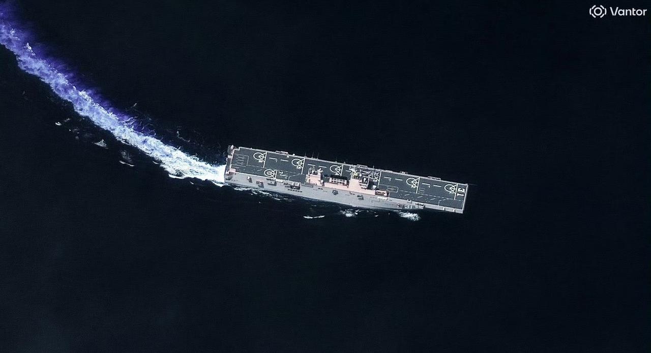 第一张图是我国卫星抓拍到美国航母的照片。第二张图是外国卫星抓拍到我国075两栖攻击舰的照片。两张卫星图片的清晰度不知道有没有后期做过处理,但也能看出一定的差距。 光学卫星的抓拍能力就在于它的识别度,我们可以清晰地看到美国航空母舰上的飞机。而外国卫星只能看出一个大概。