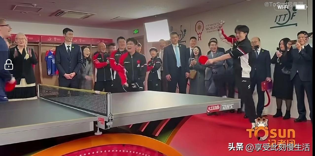 王楚钦也被孙颖莎带着变成了e人。马克龙成都和乒乓球运动员交流,王楚钦和马克龙打球竟然把马克龙等一行人全都逗得哈哈大笑。只见王楚钦右手拿着一堆球,左手拿着球拍和马克龙打球,随着一声响亮的“嚯”竟然摆起了金鸡独立的架势,就像王曼昱在双打比赛中那样。把整个现场的人都逗乐了。中国人会武术应该又被外国人看到了。