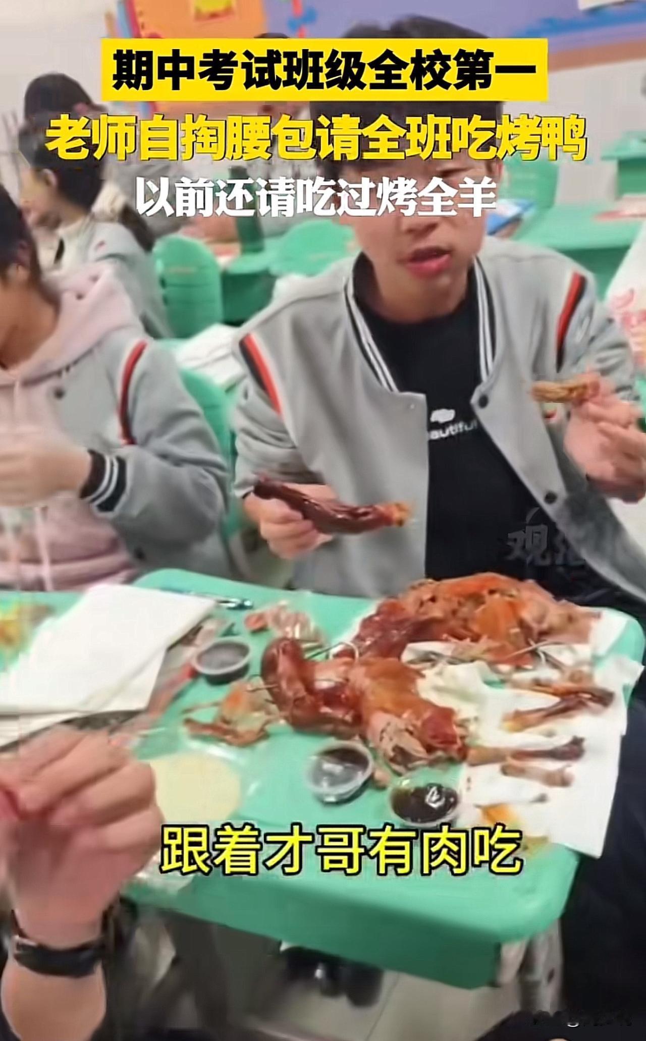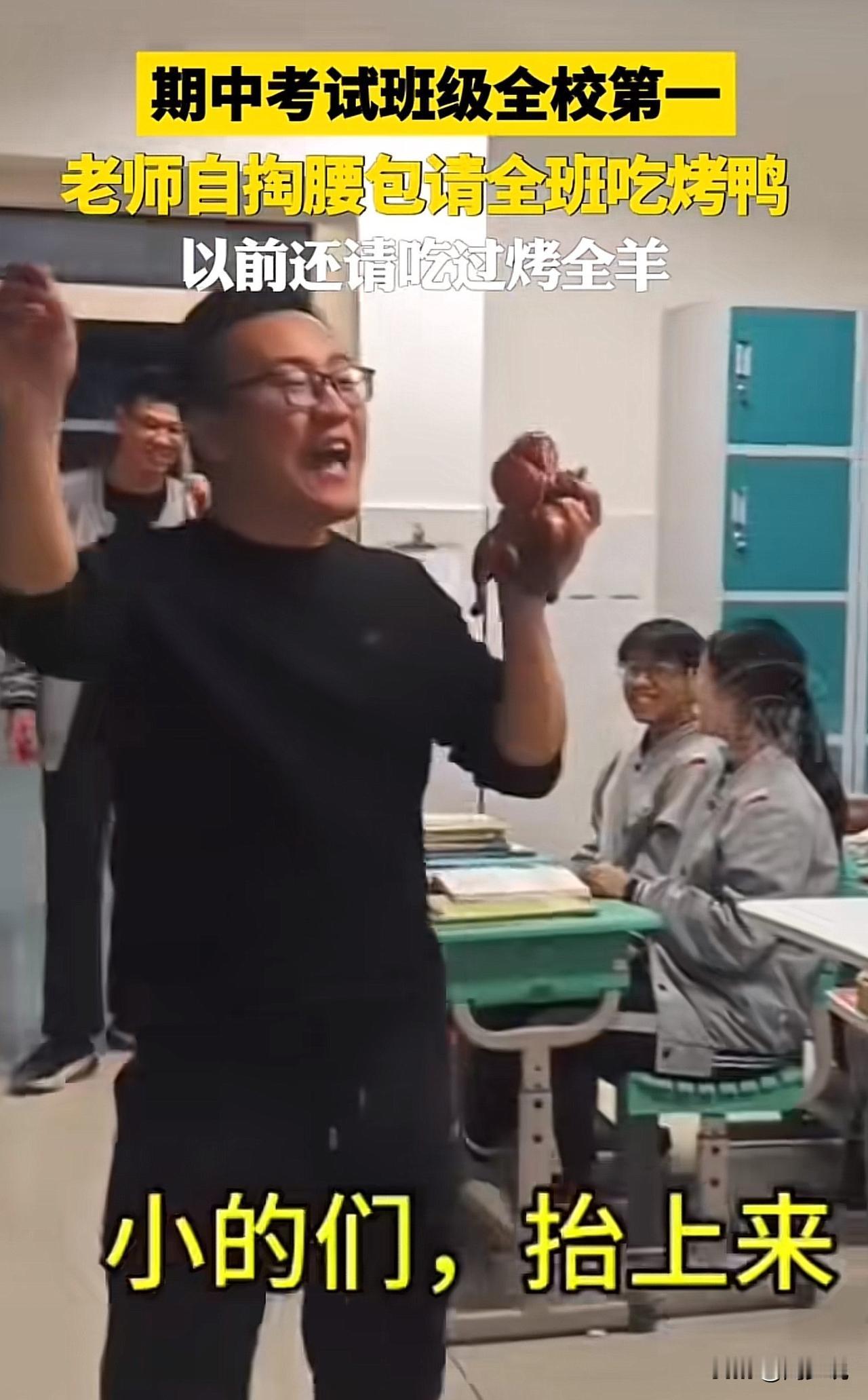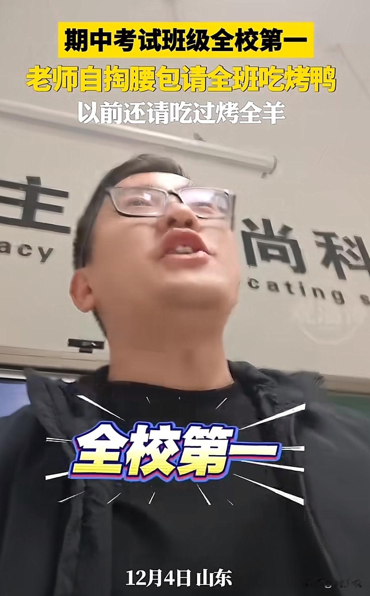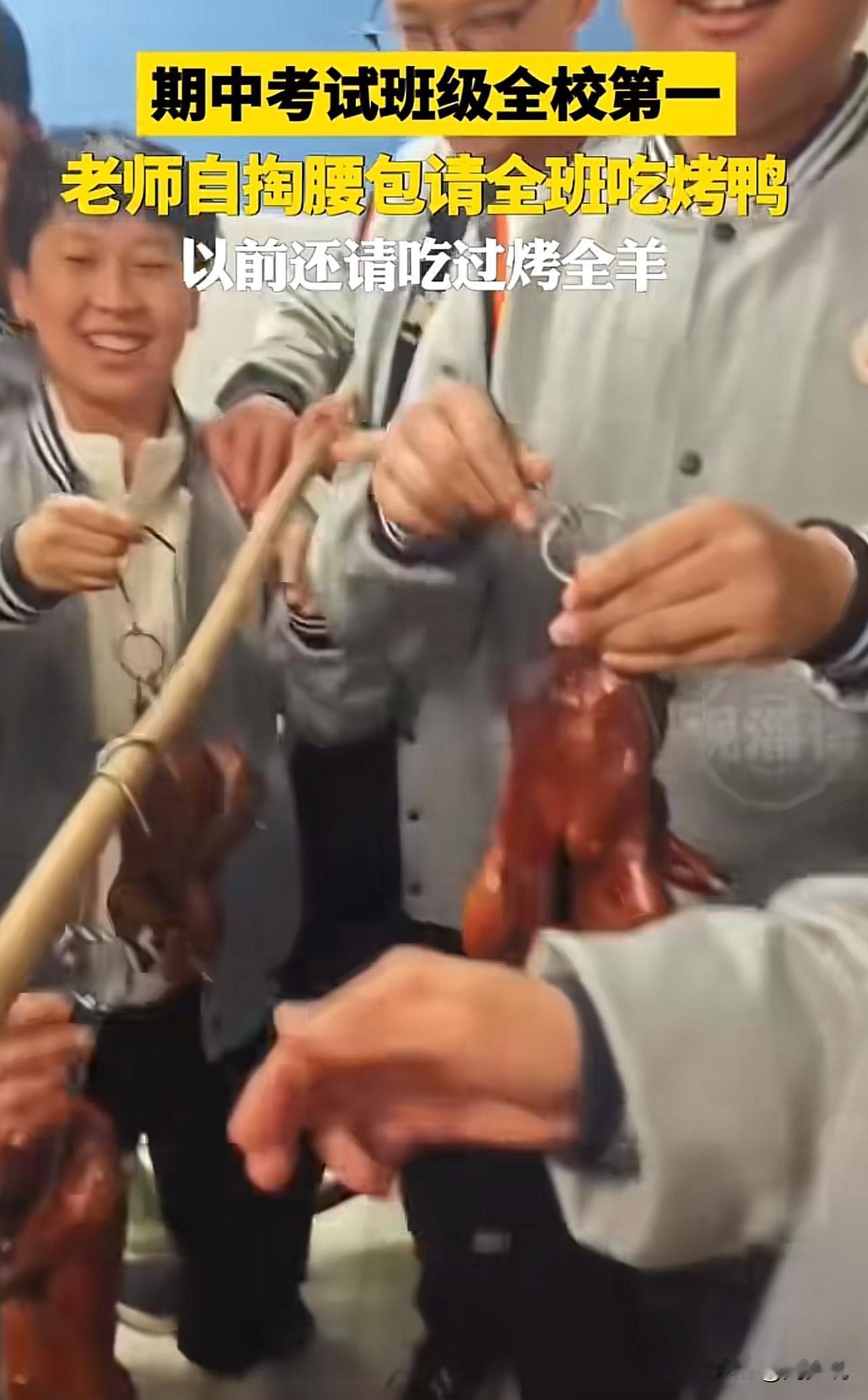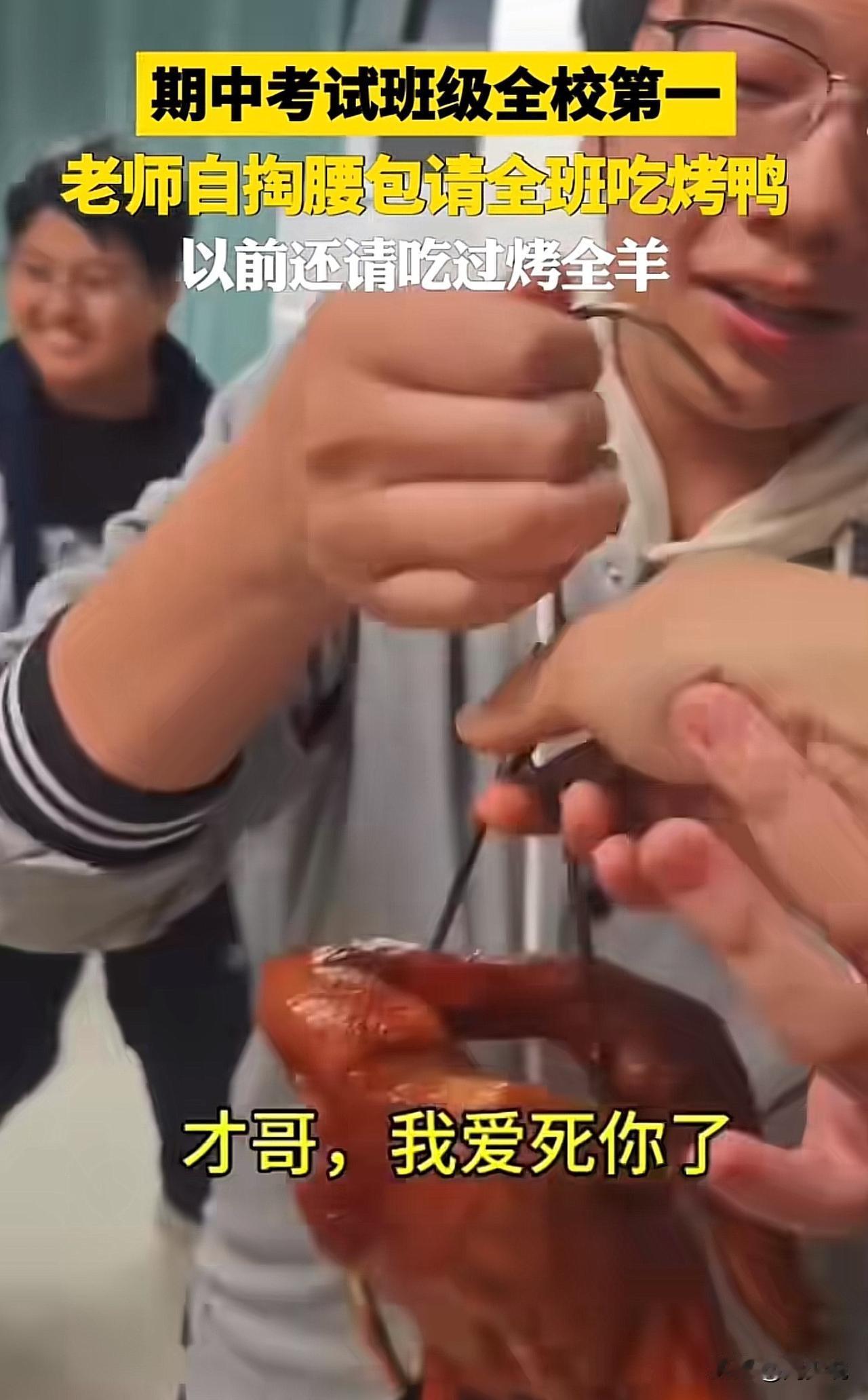 #班级考全校第一 历史老师请吃烤鸭#太暖心了!山东,期中考试落幕,某班拿下全校第一的好成绩,班主任直接自掏腰包请全班吃烤鸭,犒劳努力拼搏的同学们,暖心举动获满屏点赞。 此事引发众多网友热议,有网友说:“这样的老师太暖心了,用真心鼓励学生,难怪班级成绩好”! 也有网友感叹:“我们家的班主任是个直男,直的一根筋那种,孩子们都不太喜欢他,把他气哭了!” 更还有网友表示:“这种学习氛围和方式就很好,亦师亦友。这才是为人师表的典范,学习不只是沉闷和严肃,还需要轻松和解放天性。” 周少觉得,老师自掏腰包请客,不只是简单的物质奖励,更是对学生努力的珍视与肯定。这份真诚的鼓励,比空洞说教更有力量,既能点燃学生的学习热情,也能拉近距离、凝聚班级向心力。 这样用心育人、真心待生的老师,藏着教育最温暖的模样,值得点赞与敬佩。#寻美三湘# #长沙新朋友#