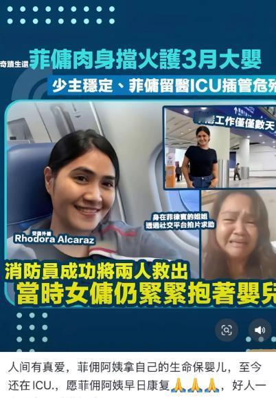 人间有真情,香港这名菲佣火了!她和雇主家三个月大的女婴一同困在火场,她不仅没有选