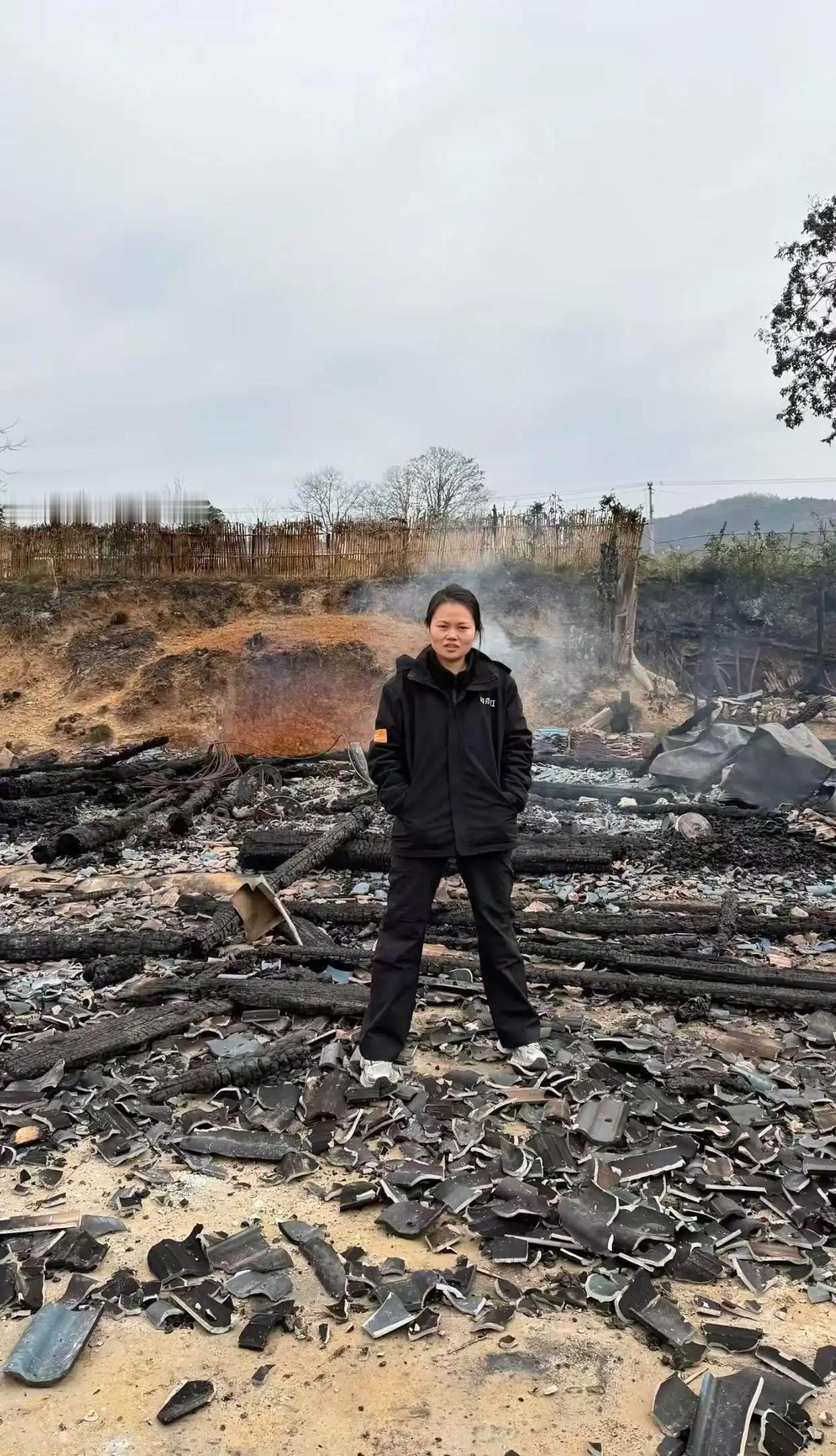 这心态绝了!湖南怀化,女子突然接到电话,得知在农村的父母房子起火了,等她赶到时,已经来不及了,不过让人意外的是,她并没有伤心和难过,反而在废墟前微笑合影。用她的话来说:只要父母健康就好 张女士介绍,她赶到的时候,房子已经快烧空了。那是父母住了一辈子的地方,木头结构,经不起火势,烧起来就是一股劲往上冲。父母当晚正在看电视,家里没烧火也没点明火,电突然断了,头顶上就亮了,这样的突发情况谁都扛不住 好在两位老人跑得及时,身上没受伤。村里人第一时间给她打电话,等她赶到,人是安全的,房子基本没了 父母看到老屋烧成这样,心里肯定难受,站在那里掉眼泪,张女士看着这一幕,心态倒还好,她说自己哭也没用,事儿已经发生了,人好好的,比什么都值钱 很多人不理解她为什么能笑。她的解释特别直白,除了生死,其他都算擦伤。听上去像一句洒脱的口头禅,其实背后是一种过日子的智慧。有些人是经历过几次大事后才悟出来的,有些人天生就是这样,把重点放在活人身上,而不是那些已经没法挽回的东西上 老屋被烧的确可惜,可木头房子该修能修,该建能建,只要父母在,家就没散。她的笑不是轻松,是一种确认了最坏没有发生之后的松口气。人站在废墟里,情绪却稳得出奇,这是一个成年人的韧性,也是很多人长大后才懂的道理 我觉得,这种从容不是不在乎,而是明白什么最珍贵