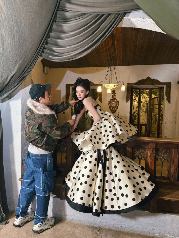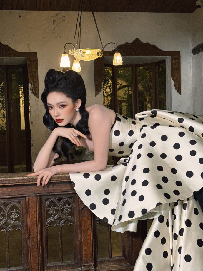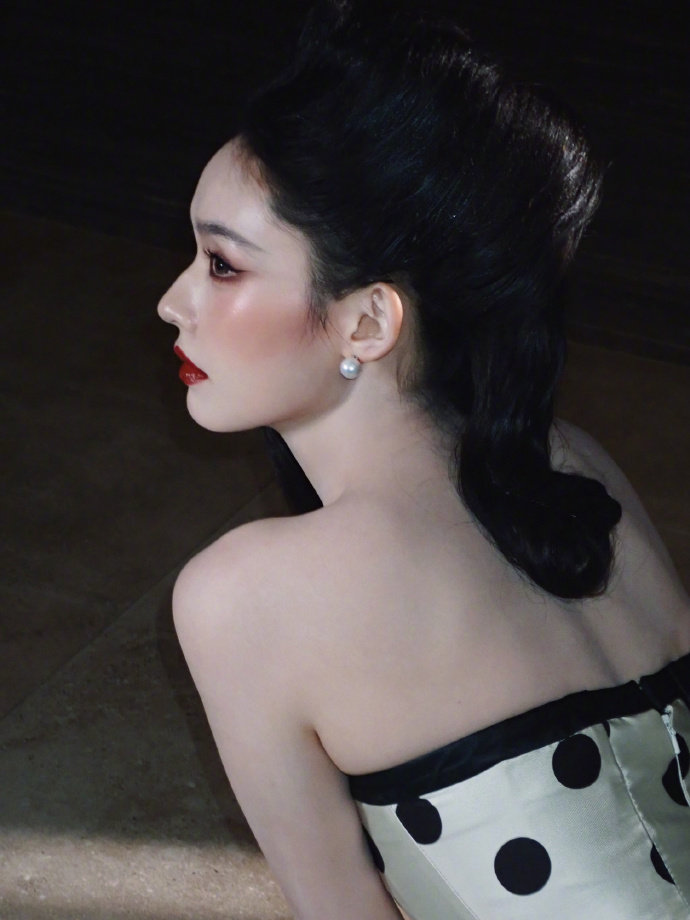 林允复古波点裙 林允美貌稳定发挥中,波波头红唇波点白裙,玩转复古风格了!期待林允