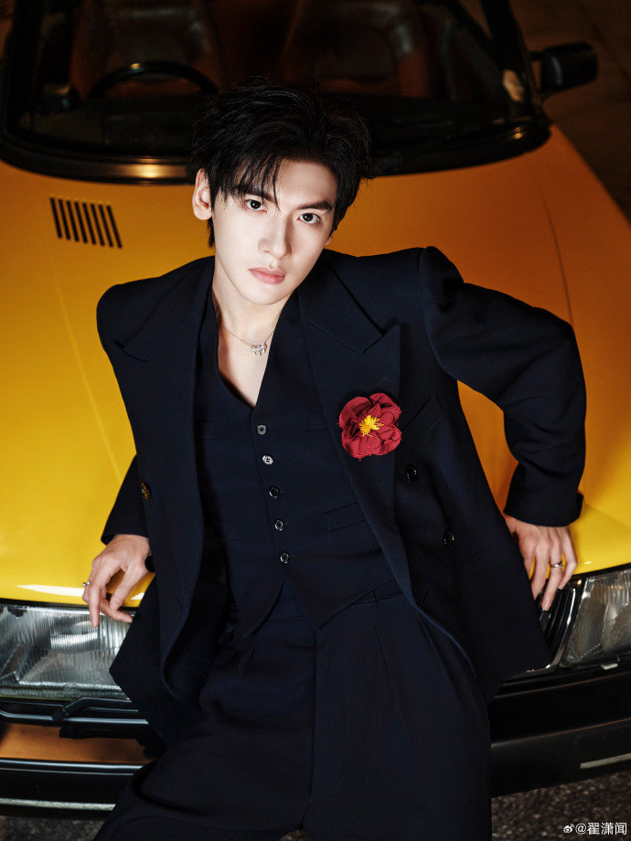 翟潇闻港风男神 翟潇闻尖叫之夜出发图来啦,黑西装露额头,帅得很周正的港风男神~胸前那朵小红花可以送我吗~