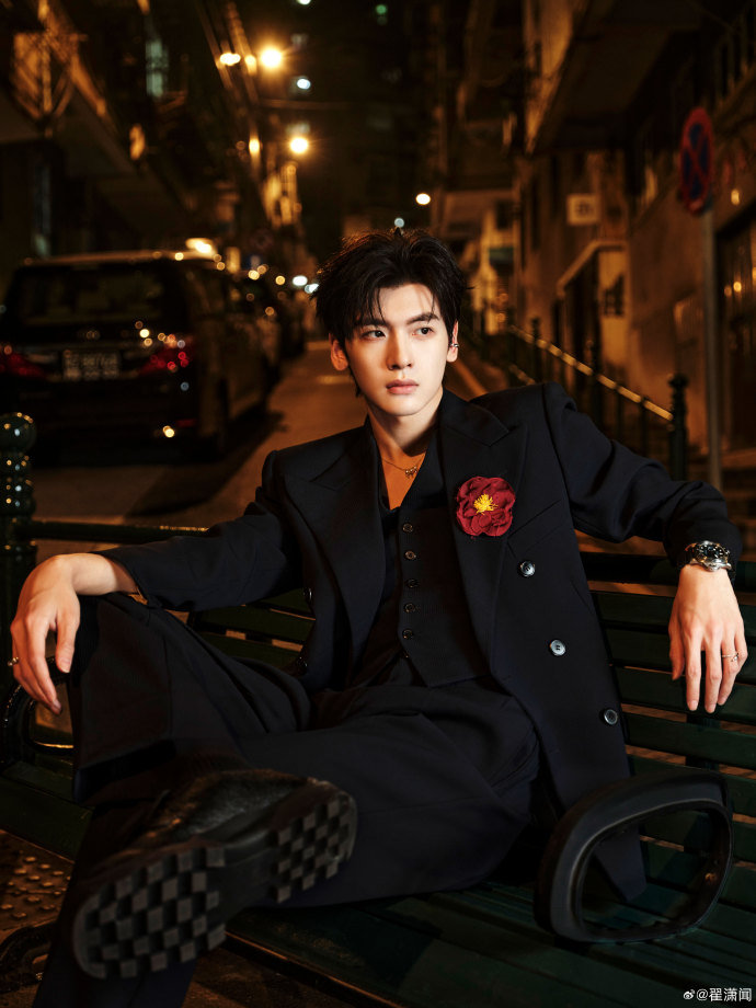 翟潇闻港风男神 翟潇闻尖叫之夜出发图来啦,黑西装露额头,帅得很周正的港风男神~胸
