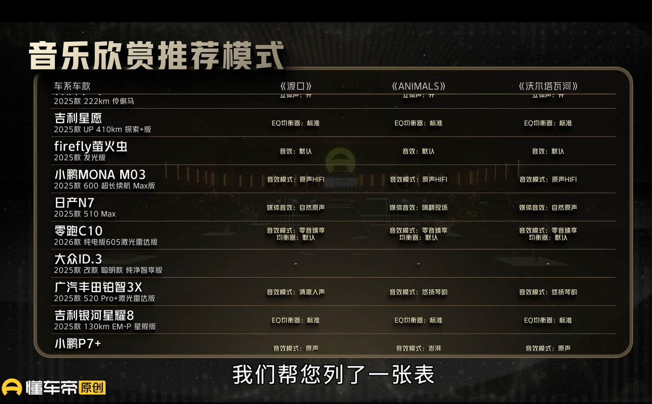 懂车帝50款热门车声音对比 关于车的音响和NVH,到底是不是一分钱一分货?这个事情呢,它不像续航测试、能耗测试,好不好一眼就能看出来。这次懂车帝给的测试结果,也只能当成一个参考,只不过是更靠谱的参考。起码,比起那些端着iPhone测车内静态噪音的所谓“专业博主”更专业,这种国家级别的实验室,显然更有说服力。国产车声音系统全面超合资
