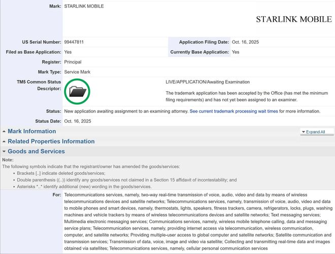 IT之家12月6日消息,科技媒体NotebookCheck昨日(12月5日)发布博文,报道称SpaceX已经向美国专利商标局(USPTO)提交了“StarlinkMobile”商标申请,标志着埃隆・马斯克正式推进独立5G移动运营商计划。