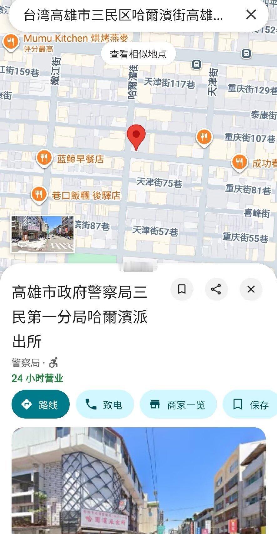 台湾高雄市的【哈尔滨派出所】不要诧异,看过图2的地图,你就明白怎么回事儿了。