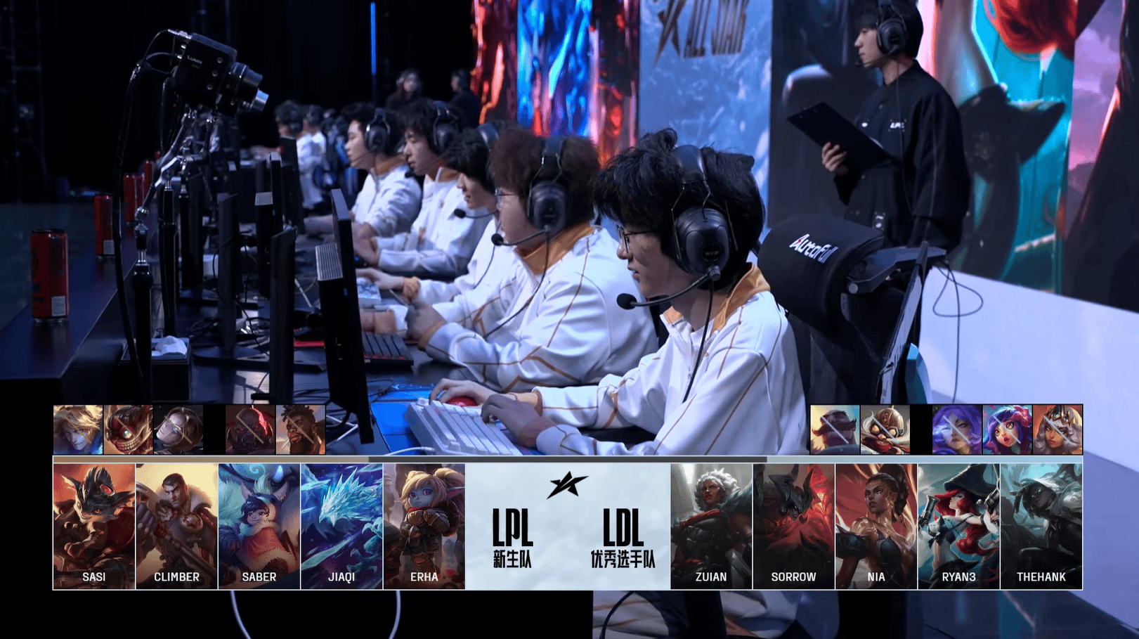 LPL新生队:sasi兰博、climber杰斯、Saber努努、JiaQi冰鸟、Erha波比