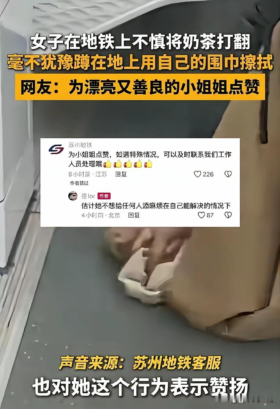 近日,一则苏州地铁的暖心事件在网络上引发热议。一名女子在地铁上不慎打翻一杯奶茶,致使车厢内一片狼藉。出人意料的是,苏州地铁部门迅速行动,不仅未责怪女子,反而主动帮忙清理,还表达了理解与关心。这一举措赢得众多网友点赞,让人感受到公共服务的温度与担当。 事件发生在一个繁忙的早高峰,女子不小心打翻奶茶,液体溅满座位与地面。车厢内顿时一片慌乱,乘客们或面露惊讶,或满是不满。就在这时,地铁工作人员迅速响应,第一时间走到女子身旁,轻声询问是否需要帮助,并主动拿出纸巾和清洁工具,着手清理洒出的液体。工作人员的细致与耐心,让车厢内的紧张气氛逐渐缓和。 更令人动容的是,地铁部门负责人在接受采访时称:“我们明白乘客在公共场所难免会遭遇意外,关键在于如何及时处理并彰显服务精神。”他们还表示会加强员工培训,提升应对突发事件的能力,确保乘客在乘车时能感受到更多关怀。 这起事件在网络上广泛传播,网友纷纷点赞:“地铁工作人员的态度令人感动,他们用行动传递了责任与温暖。”“一个小小的举动,却彰显了公共服务的温度,让人心里暖乎乎的。”有人评论:“这才是真正的公共服务精神,不指责、不推诿,积极相助,值得我们学习。” 这件事让我们明白,公共交通不只是连接城市的纽带,更是城市文明的窗口。在公共场合,理解与包容至关重要。地铁工作人员的善意与专业,让乘客感受到社会的温暖,也树立了优秀的公共服务典范。希望未来,更多公共服务人员能以这样的态度应对突发事件,用真心与责任赢得乘客的尊重和信任。