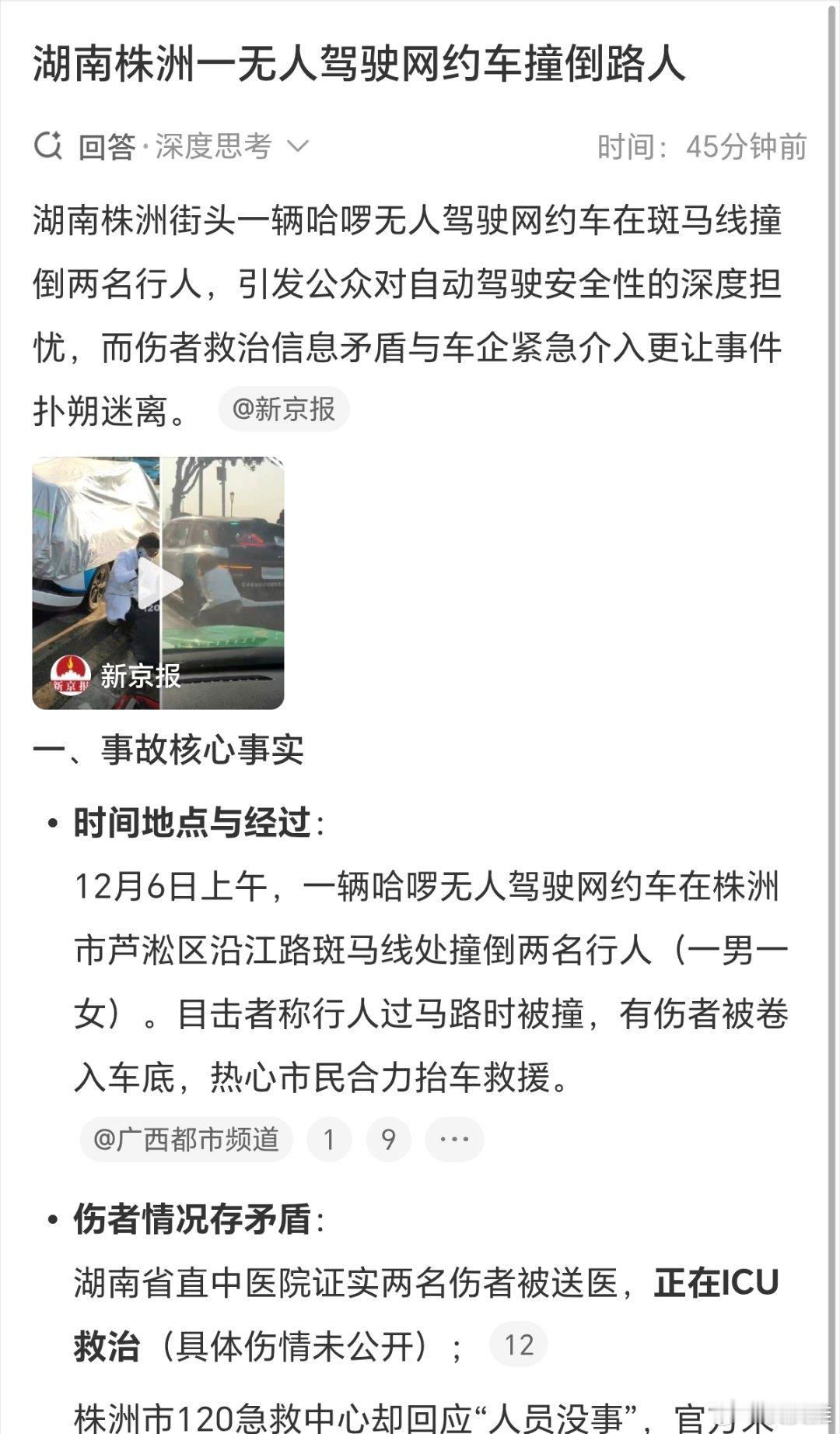 湖南株洲一无人驾驶网约车撞倒路人有点吓人。。。新闻里面的是哈啰无人驾驶网约车吗?蹲一个官方通告。。。科技先锋官