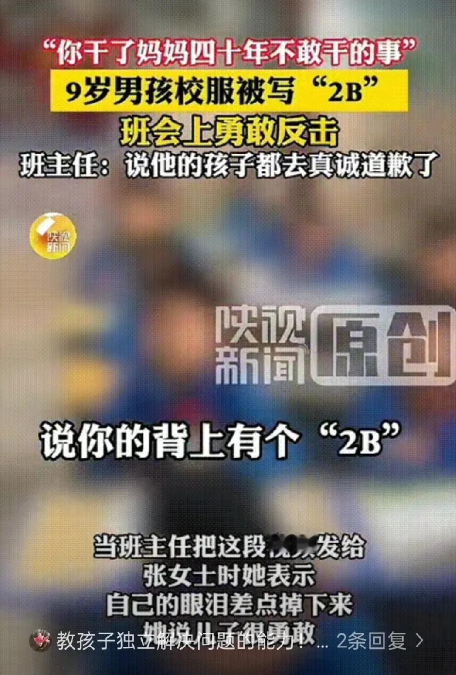 西安icon这位9岁男孩也太刚了! 妈妈发现他校服背后被人写了“2B”,得知孩