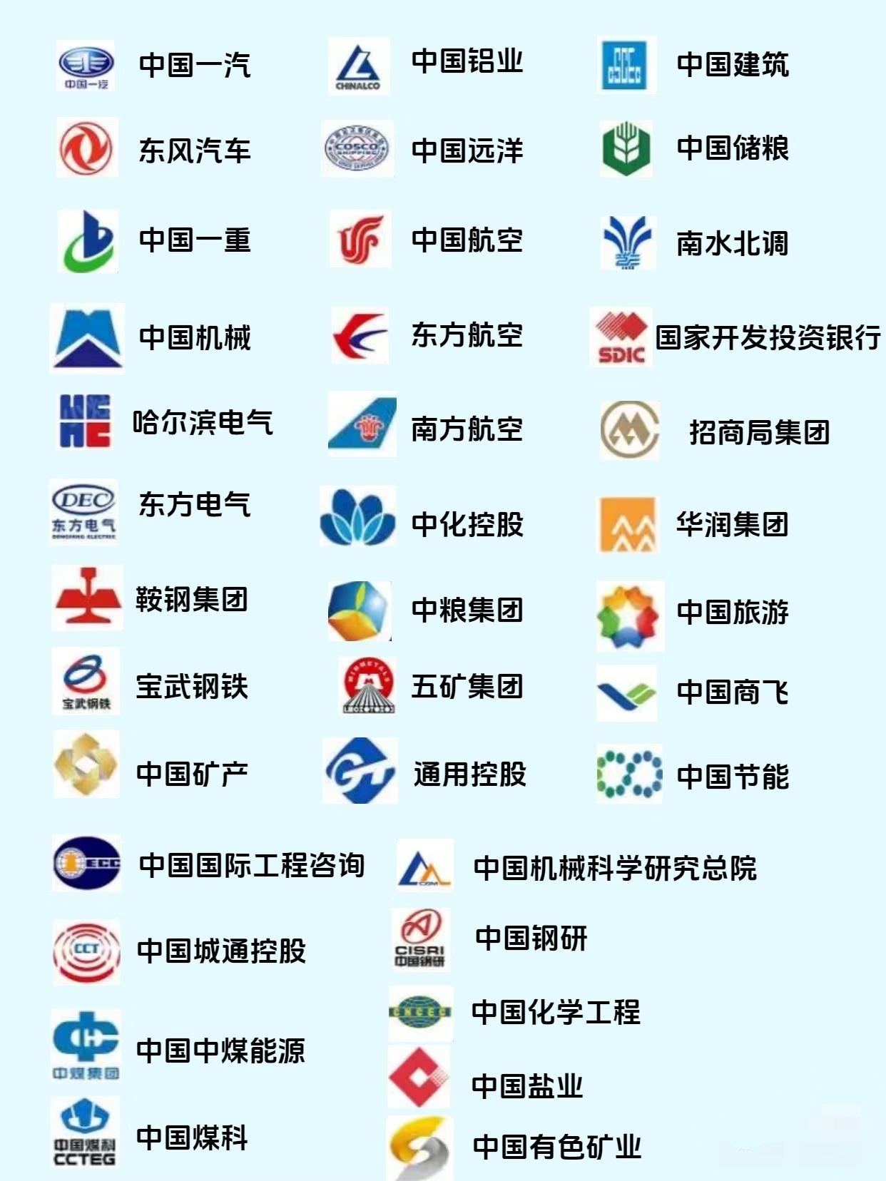 “一文看清 中国央企100强” - 说明:数据来自国资委官网,排名不分先后 第一张图 中核集团、中国航天、中国石化、中国海油、中国船舶、中国兵器、中国电科、中国航发、中国南方电网、中国华能、国家电网、三峡集团、国家能源、中国电信、中国联通、中国移动、中国华电、中国电子信息产业等。 第2张图 - 行业覆盖:汽车(如中国一汽、东风汽车)、金属(如中国铝业、鞍钢集团、宝武钢铁)、建筑(如中国建筑)、航空(如中国航空、东方航空、南方航空)、物流(如中国远洋)、粮食储备(如中国储粮)、重型装备(如中国一重、中国机械)、水电与开发(如南水北调、国家开发投资银行)、能源设备(如哈尔滨电气、东方电气)、化工与贸易(如中化控股、中粮集团、五矿集团)、旅游(如中国旅游)、制造与科研(如中国商飞、中国机械科学研究总院、中国钢研)、节能环保(如中国节能)、工程咨询(如中国国际工程咨询)、矿产(如中国矿产、中国有色矿业)、以及其他综合类(如招商局集团、华润集团)。 第3张图 - 行业覆盖:建筑(如中国建材、中国铁建)、稀土(如中国稀土)、航空与运输服务(如中国航信、中国航油、中国航材、中国航科)、交通基建(如中国交通建设)、资源循环(如中国资源循环)、信息通信(如中国信息通信科技)、科研(如中国有研科技、中国矿冶科技)、农业(如中国农业发展)、电力与能源(如中国电力、中国能建)、林业(如中国林业)、医药(如中国医药)、国际合作(如国际技术智力合作集团)、安全应急(如中国安能)、科研与标准(如建筑科学研究院)、综合投资与文化(如保利集团)、贵金属(如中国黄金)。 综合结论: 以上共同构成了对中国央企的系统性展示,涵盖核工业、航天、石化、能源、电力、通信、建筑、冶金、航空、交通、农业、医药、科研等多个关键行业,反映出央企作为国民经济支柱的广泛影响力与多元化结构。