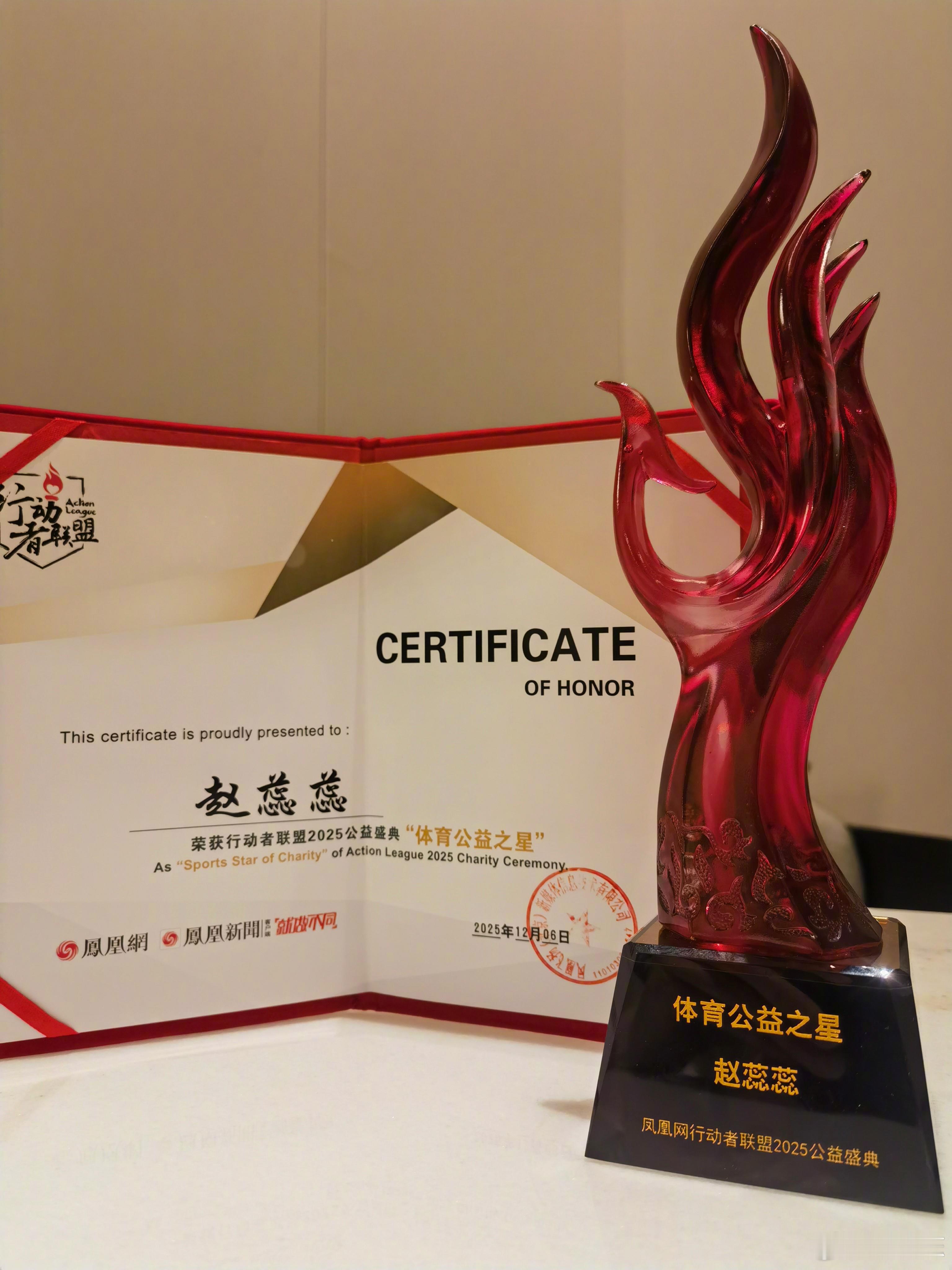很开心荣获凤凰网行动者联盟2025公益盛典的体育公益之星的奖项。这是一份鼓励和认可,更是一份责任与鞭策。希望通过自己的努力,可以把体育的力量带给更多的人。而公益慈善、慈悲善举,可以从很小的事做起,即便在痛苦中我们也可以有希望别人不要再经历自己同样痛苦的发心,因为那一刻的心念,我们已经对自己做了慈善之举,因为只有消解了痛苦带来的抱怨与恨意,才可以腾出空间让爱滋长。我们也不要吝啬微不足道的努力,一个温暖的微笑,一声坚定的鼓励,一个温柔的拥抱……都可以带给别人力量。因为你不知道谁会因为你的光而走出黑暗。 行动者联盟公益盛典
