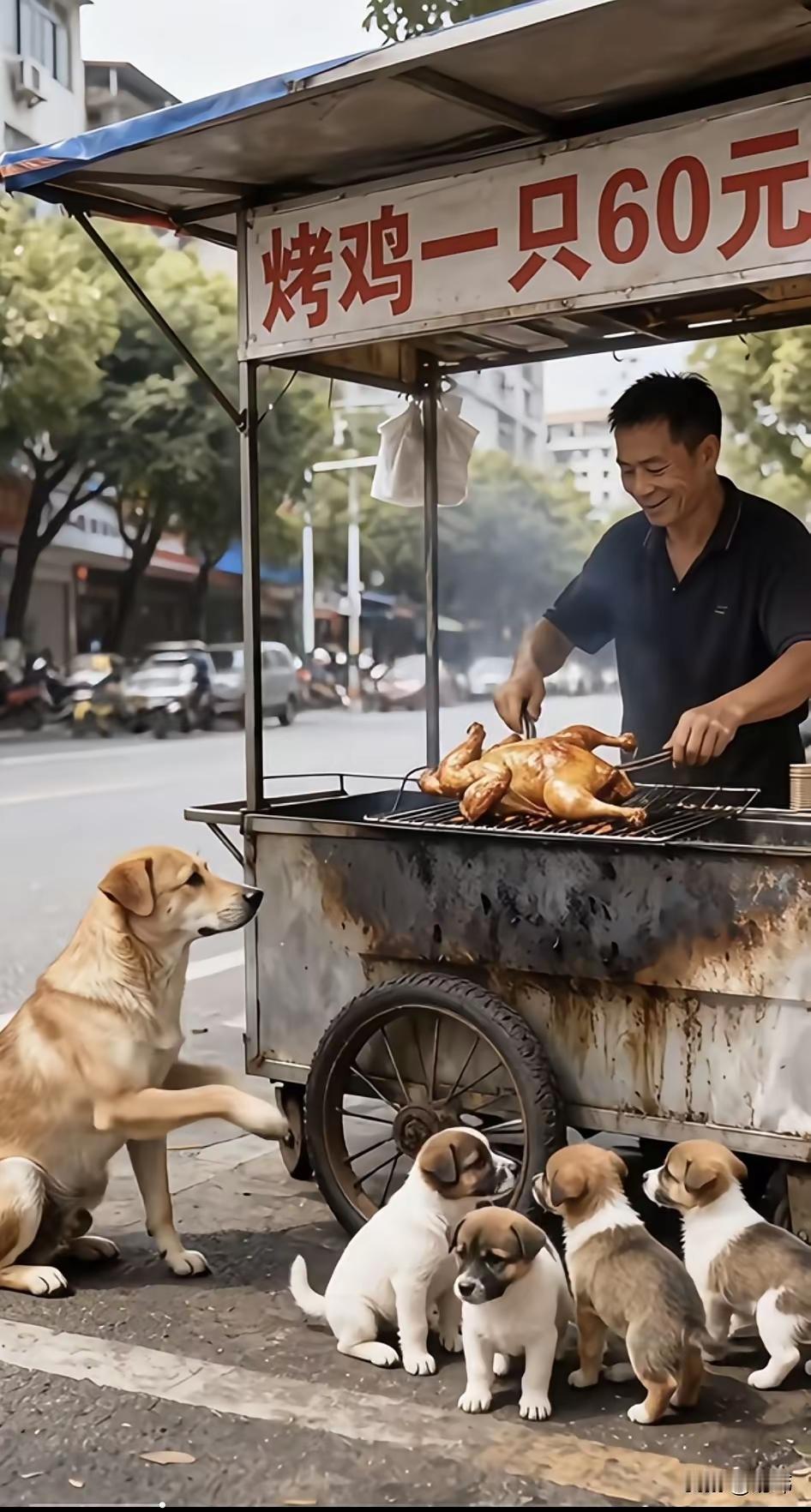 太感人了!这天一只可怜的狗妈妈带着几只小奶狗来到一家烤鸡摊前面,它们已经一天没有吃东西,饿的非常虚弱了,闻到香味就过来乞食。它站起来不停地作揖,希望老板能给它们点吃的。 虽然它并不太抱希望,因为之前它也曾这样求助过别人,没人愿意帮助它们,谁知这位老板却是大好人,直接给了它们一整只烤鸡,狗妈妈带着四只小奶狗津津有味地吃了起来,从此之后,狗妈妈一家经常来这家烤鸡店,而老板每次也是慷慨解囊相助,这真的是一位好大哥! 网友评论: 好心的老板救了狗妈妈一家,好心人有好报。希望就近看到视频的人们多买点老板的食品以支持老板救狗妈妈一家。 怎么能有这么好的老板呢,世上没有比人类更加残忍的动物了,我在这里祝福这个老板全家幸福快乐每一天 祝这位老板顺风顺水,生意兴隆,发大财,我要是在当地的话,买东西就去这位善良的老板家买去,善良的好人们都去这位老板家买货去吧,祝狗孑全家从今后别在饿肚子了,上帝保佑吧 祝老板生意兴隆财源滚滚身体健康万事如意心想事成发大财,好人一生平安幸福!
