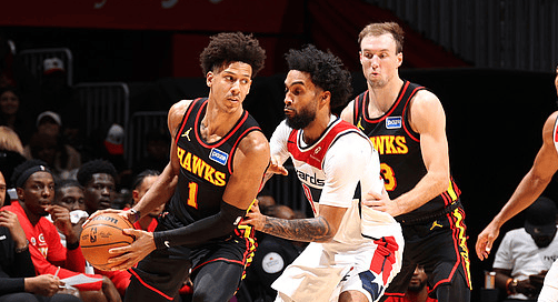 虎扑12月07日讯今日NBA常规赛老鹰背靠背对阵奇才,老鹰球员杰伦-约翰逊再次拿下三双。