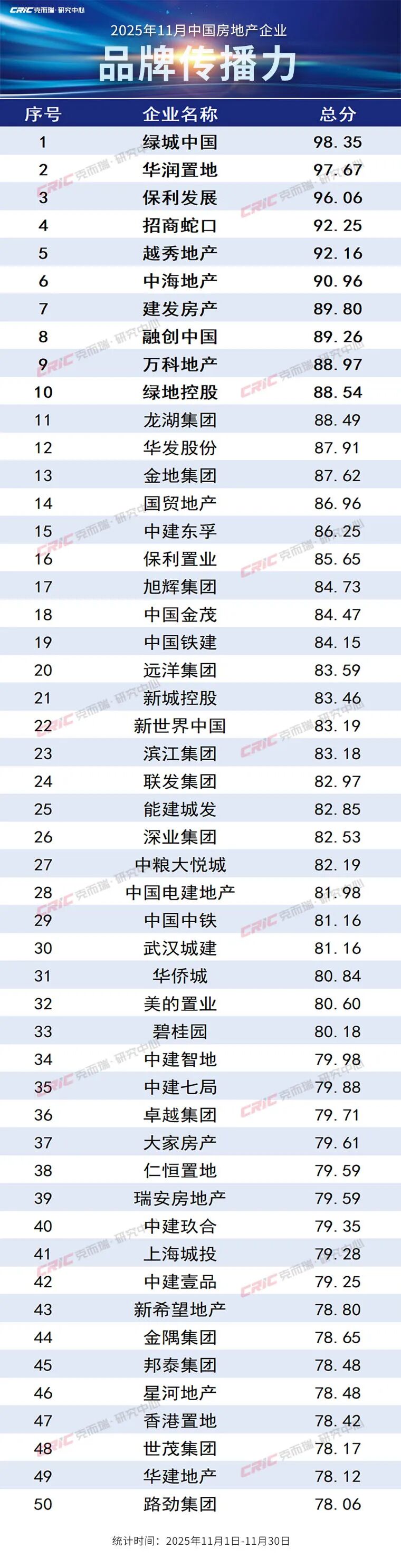 11月26日,香港新界大埔屋邨宏福苑发生重大火灾,牵动社会各界心弦。招商局集团、北京城建集团等多家房企第一时间响应,以捐款捐物、物资调配等务实行动投身救灾工作,成为本月品牌传播力表现的核心亮点,充分彰显了企业的社会责任感与应急响应能力。