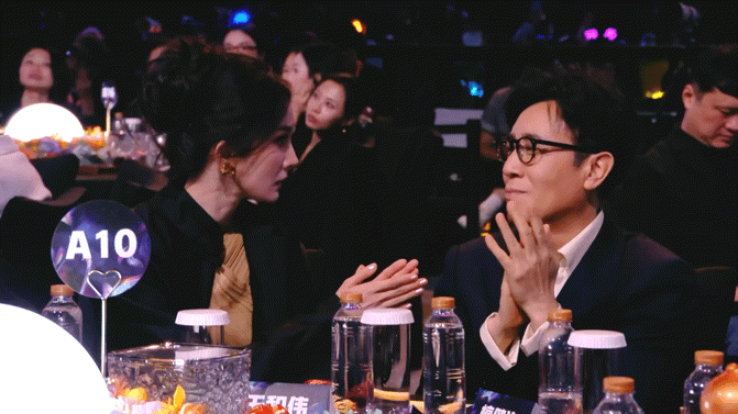 我给杨幂再颁个最佳氛围组奖于和伟领奖时杨幂太萌了