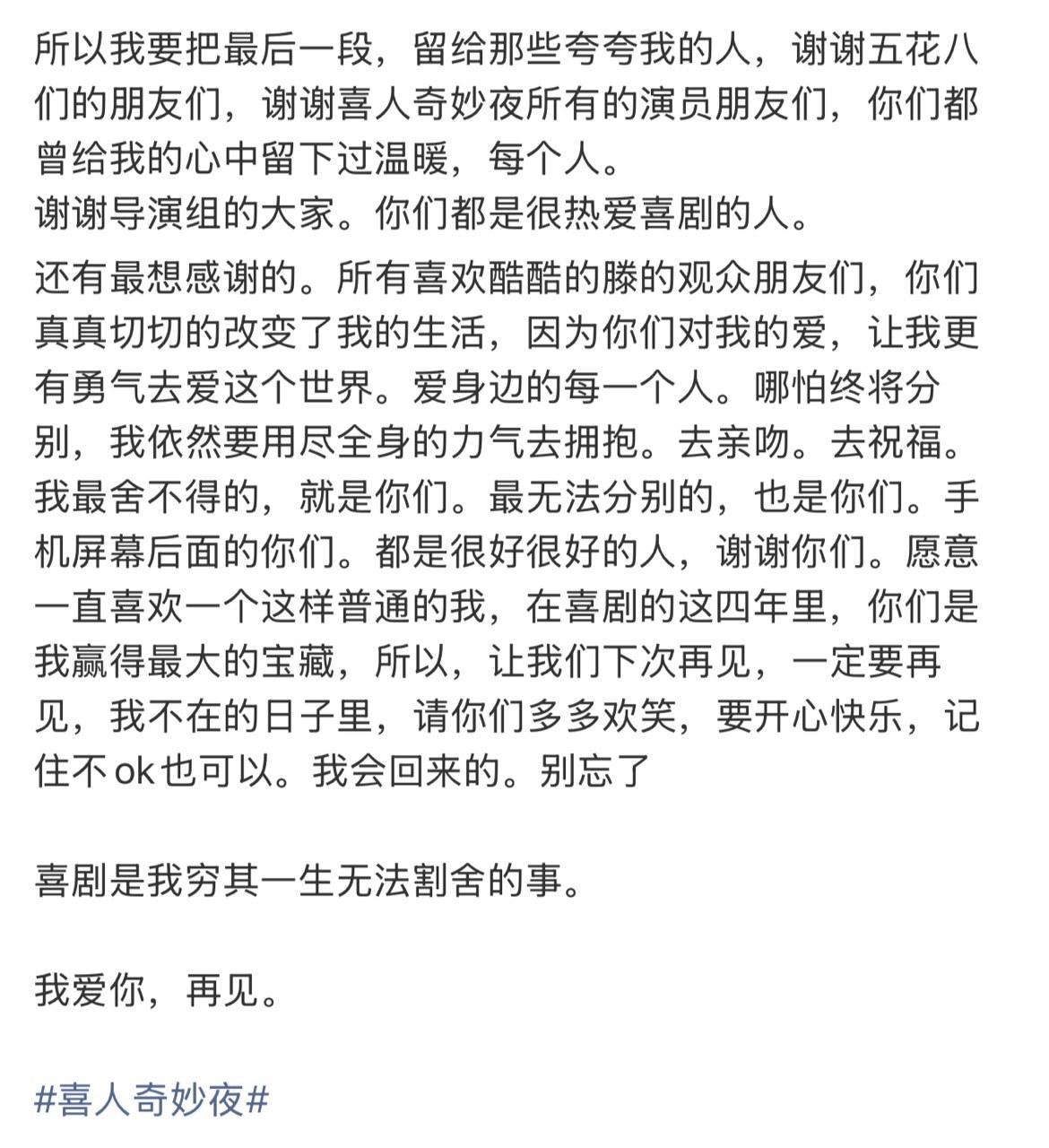 酷酷的滕写给观众的信喜人奇妙夜 比赛结束有温度!酷酷的滕发长微博致观众,聊作品、
