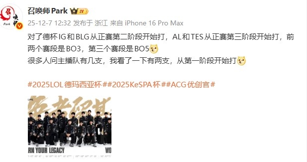 爆料人:德杯IG和BLG从二阶段开始 AL TES三阶段开始 主播队两支