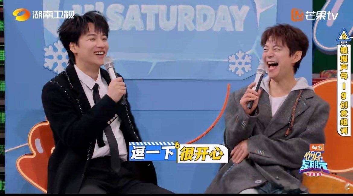沈月眼里只有爆梗的渴望 声母游戏里和王鹤棣疯狂为团队加分,状态直接拉满,结果被何老师点评 “梗一般”,月月当场大委屈,满脑子都是想爆梗的执念~你好星期六