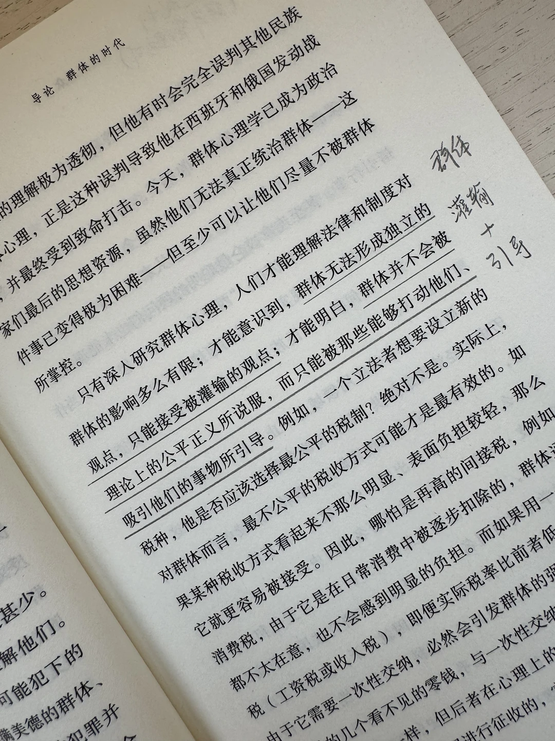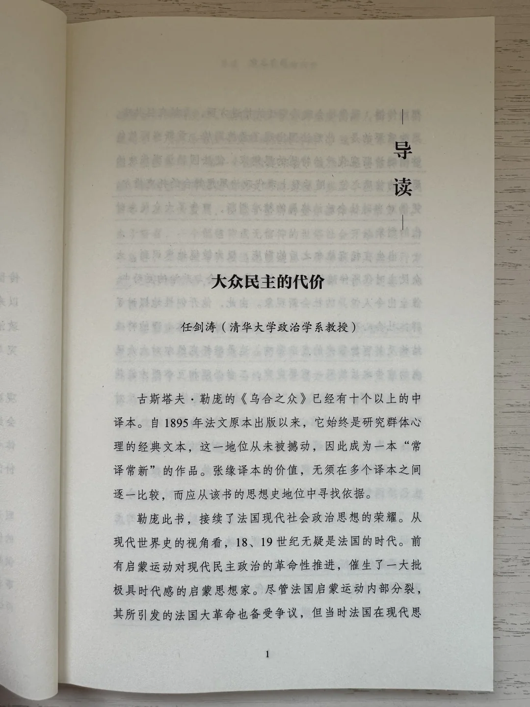 我手上也翻过几个版本,但最后只留下了这一版。原因不是版本“Z好”,而是这本书在翻译之外,还提供了任剑涛这样的导读,把这本社会心理经典放回十九世纪法国思想的轨道,让文本有了坐标,而不是一堆零散观点