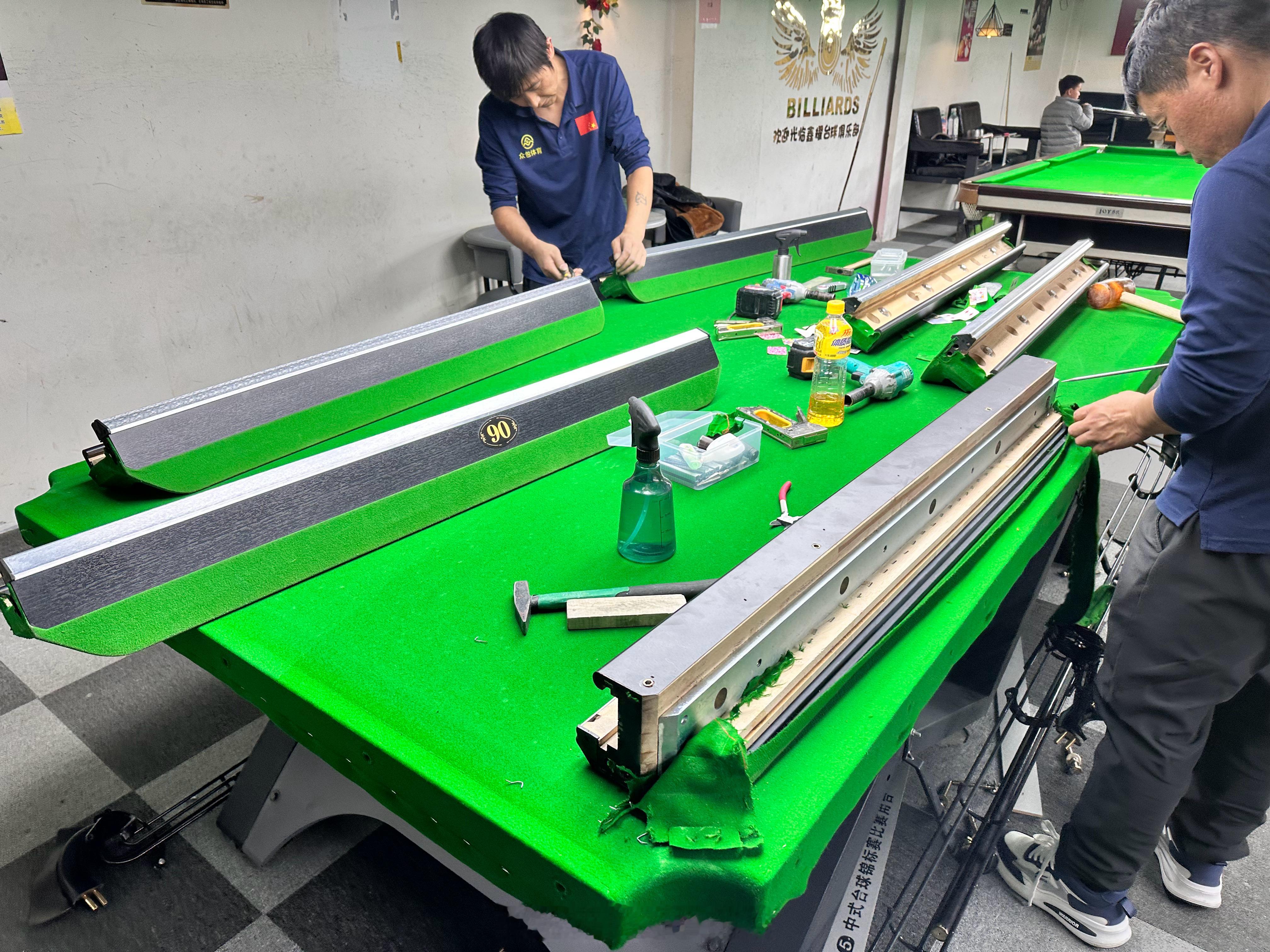 头一次见到台球桌换台尼,原来是这个样子