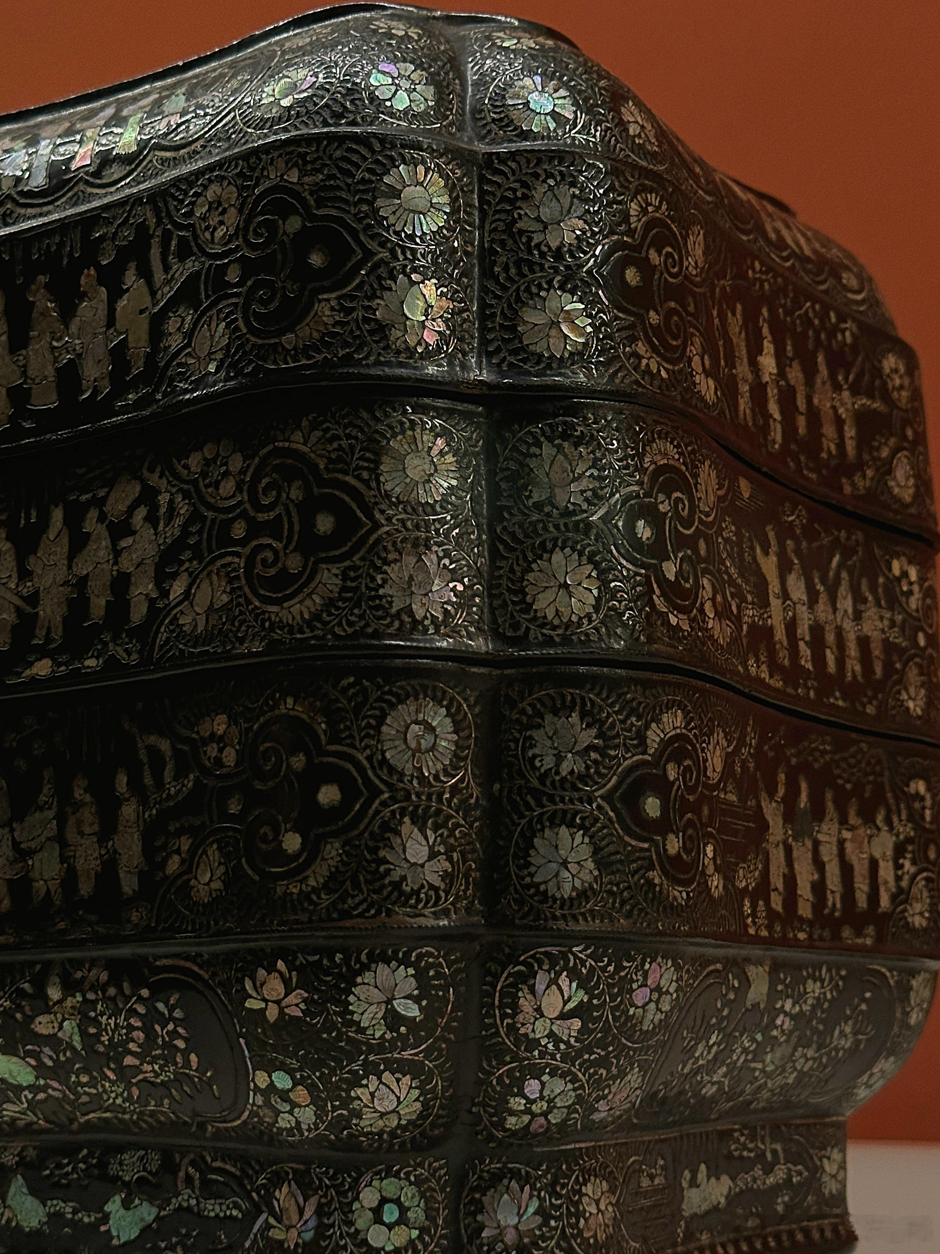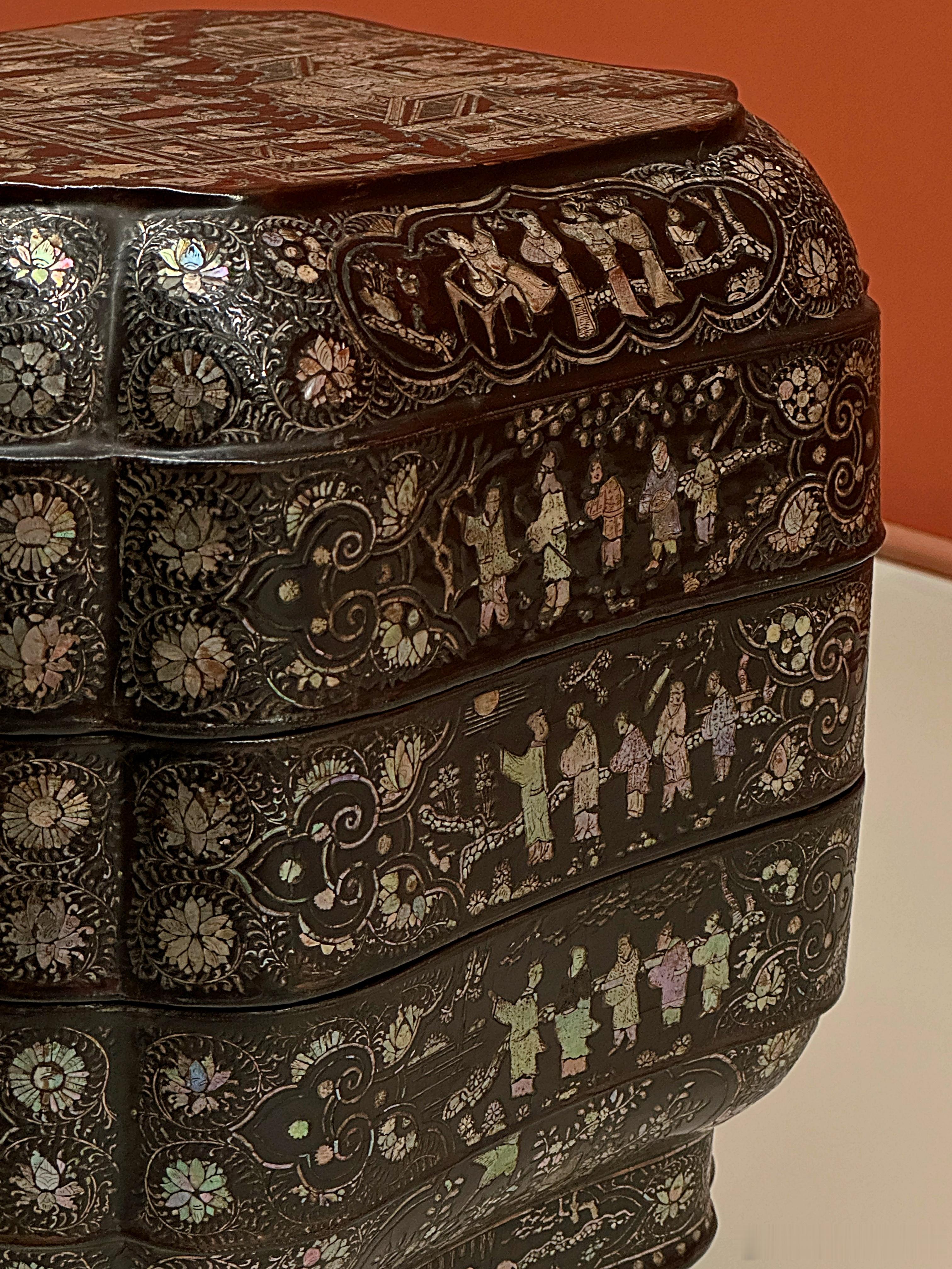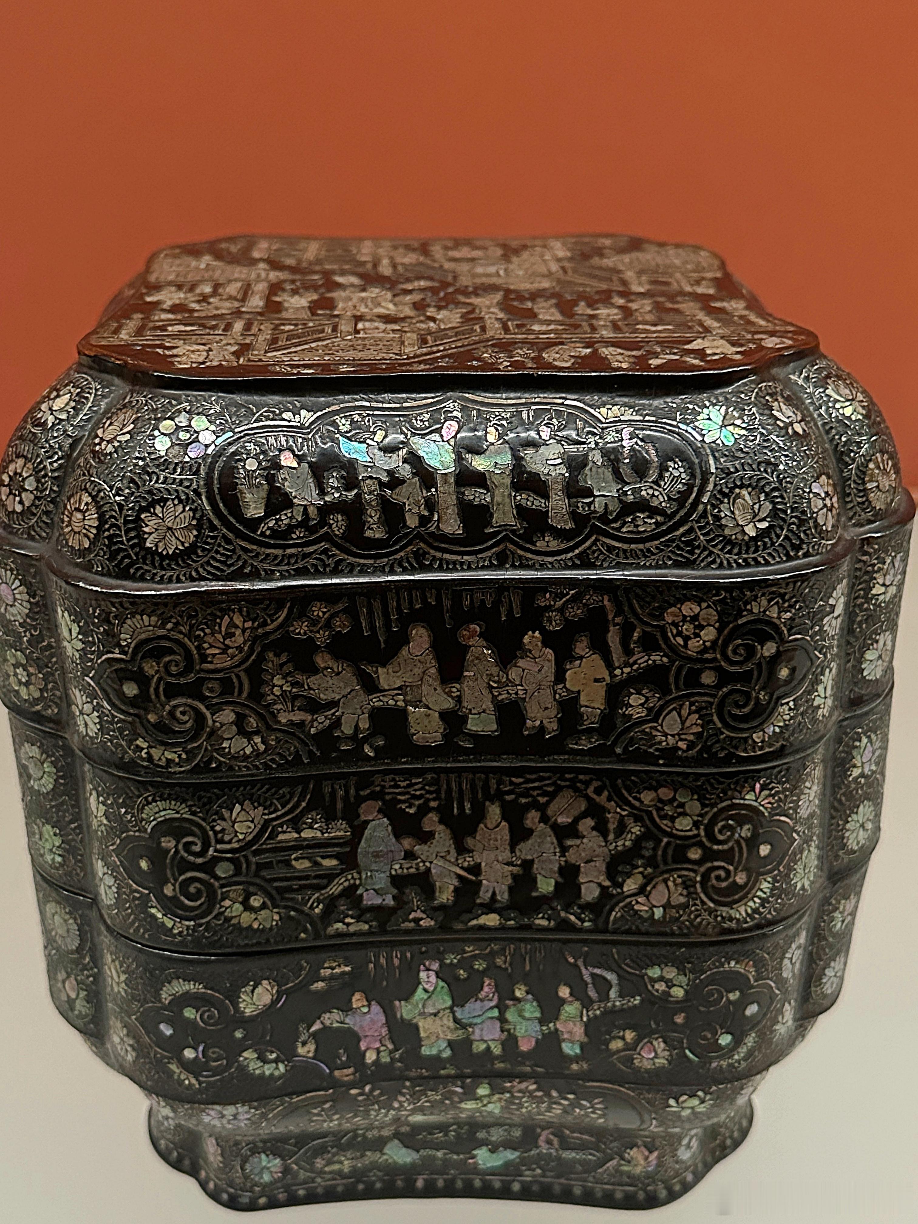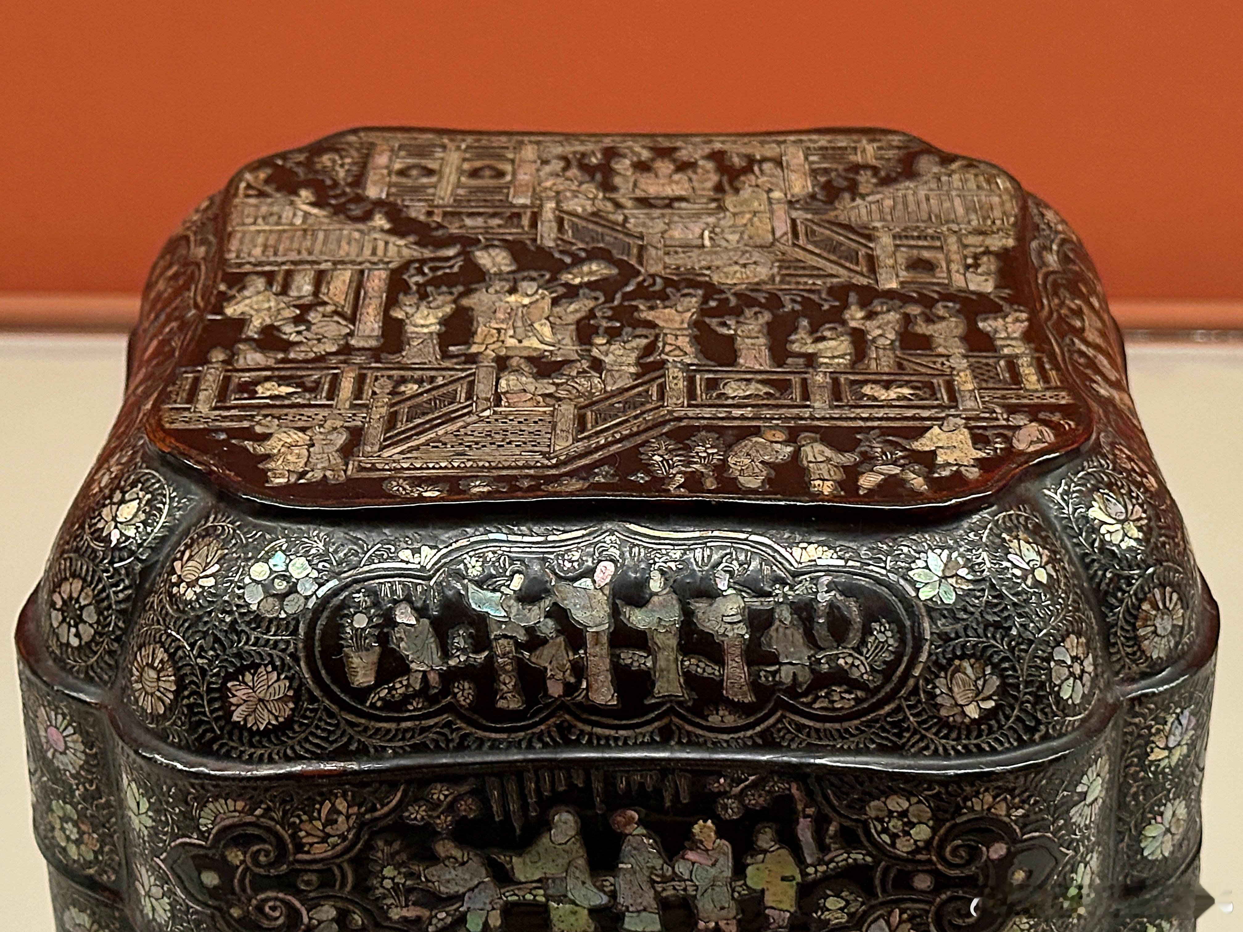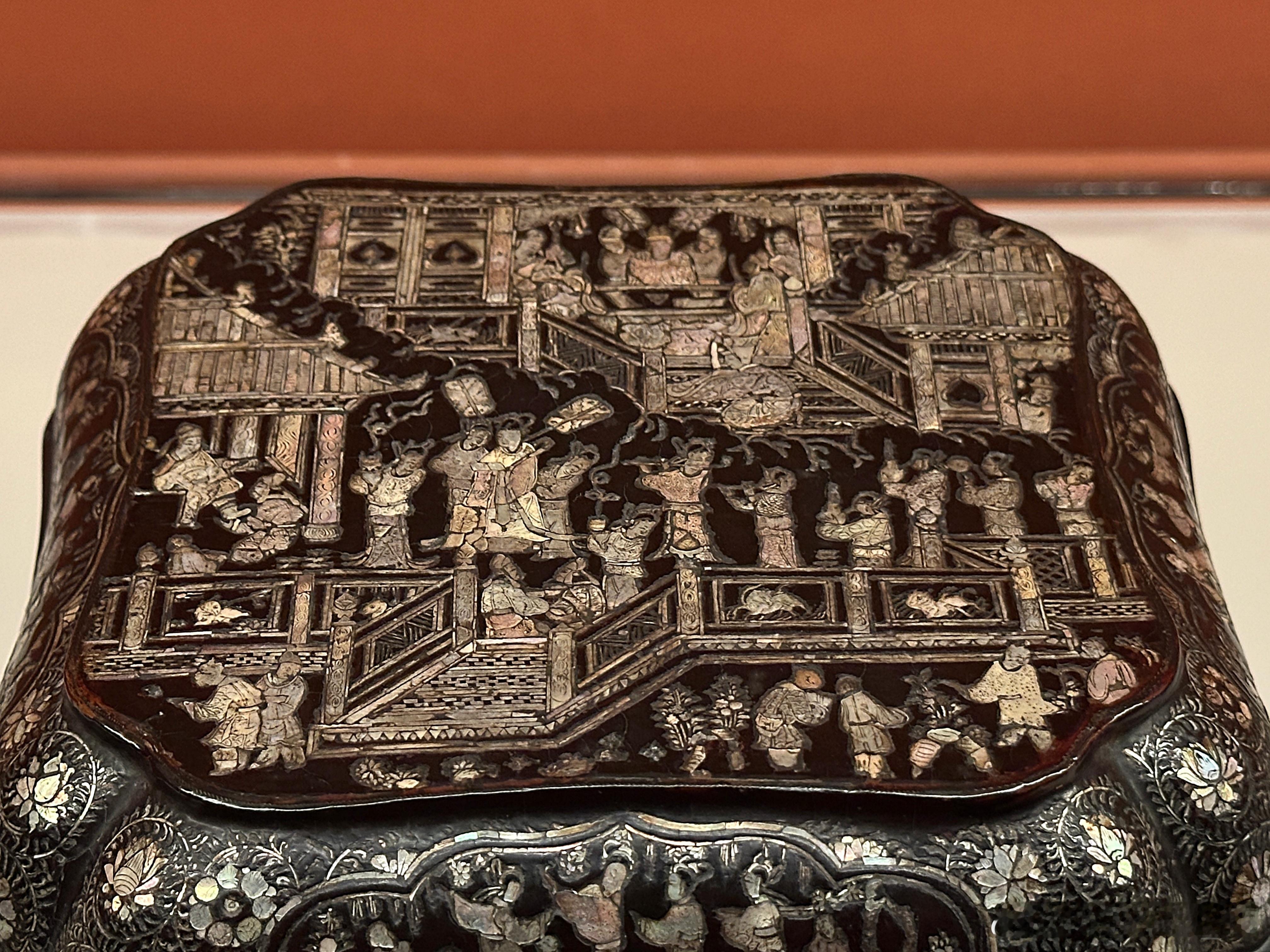 黑漆螺钿楼阁人物图盒元至明 14世纪东京国立博物馆藏红翠斗芳菲:宋元明漆器珍品展 展出摄于上海博物馆