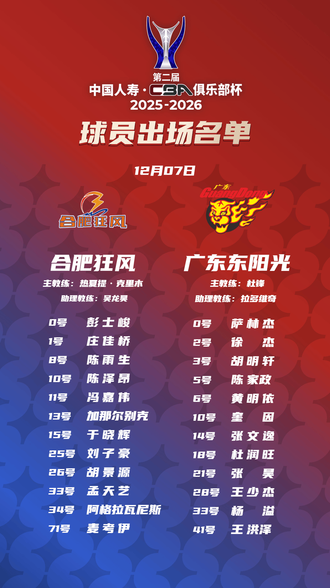虎扑12月07日讯今日CBA俱乐部杯,广东男篮将对阵合肥狂风。