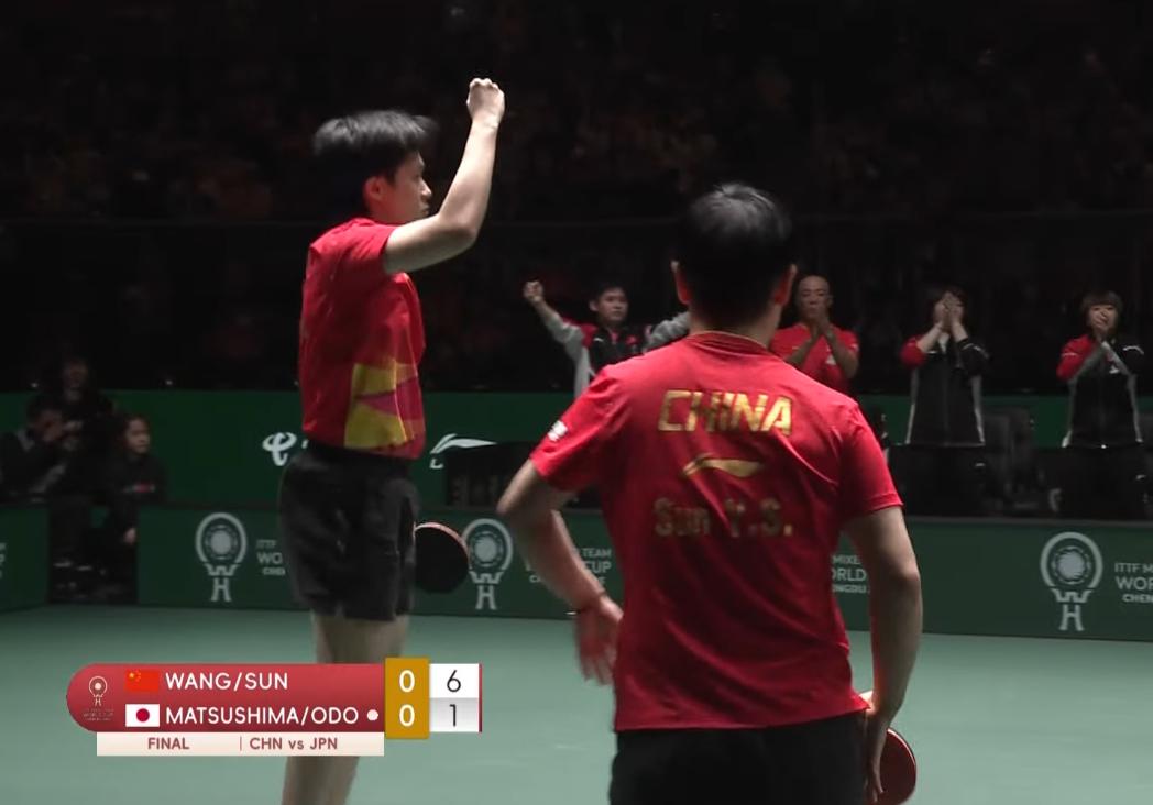 笑死我了!王楚钦平时很稳重, 打日本队咋这么兴奋? 今天不但握拳庆祝, 还是跳着握拳。 孙颖莎/王楚钦开局6:1领先 松岛辉空心态有些崩呀, 莎莎失误两个球, 大头立刻爆冲还以颜色, 莎头8:3领先, 大头打坏一个球, 还跳了两下, 可见他非常兴奋, 最后莎头11:4拿下