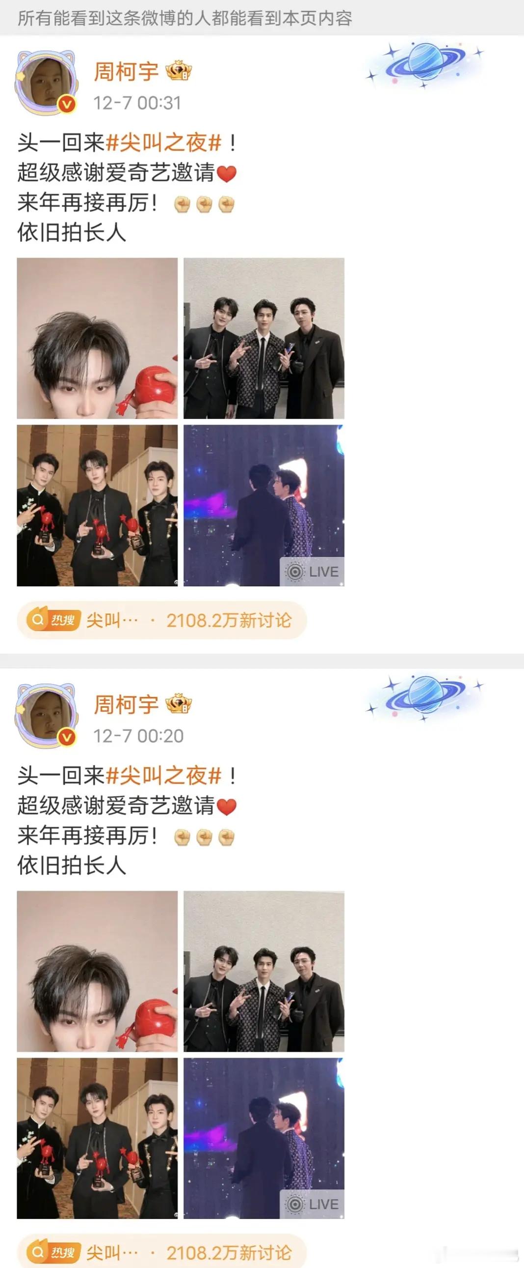 周柯宇不小心放了合照原图又编辑了,其实没什么差的