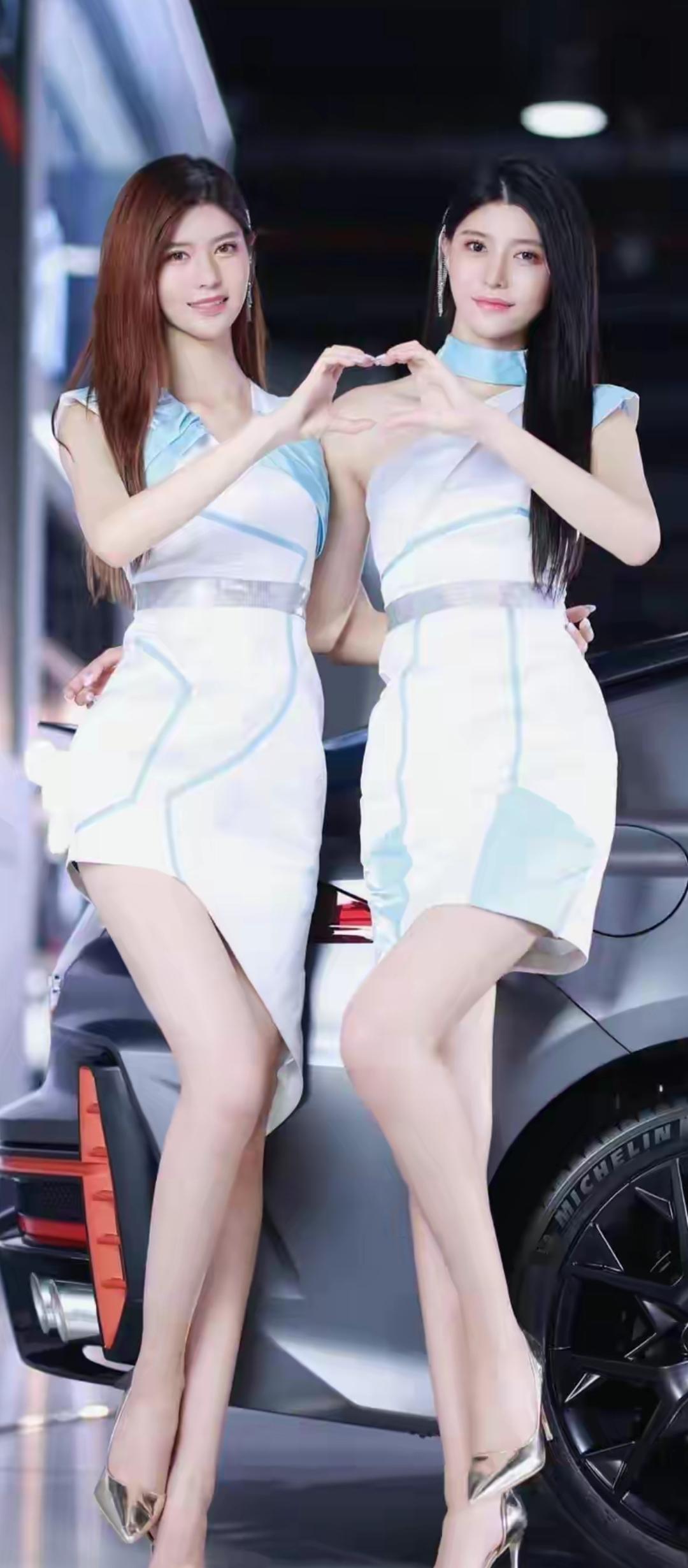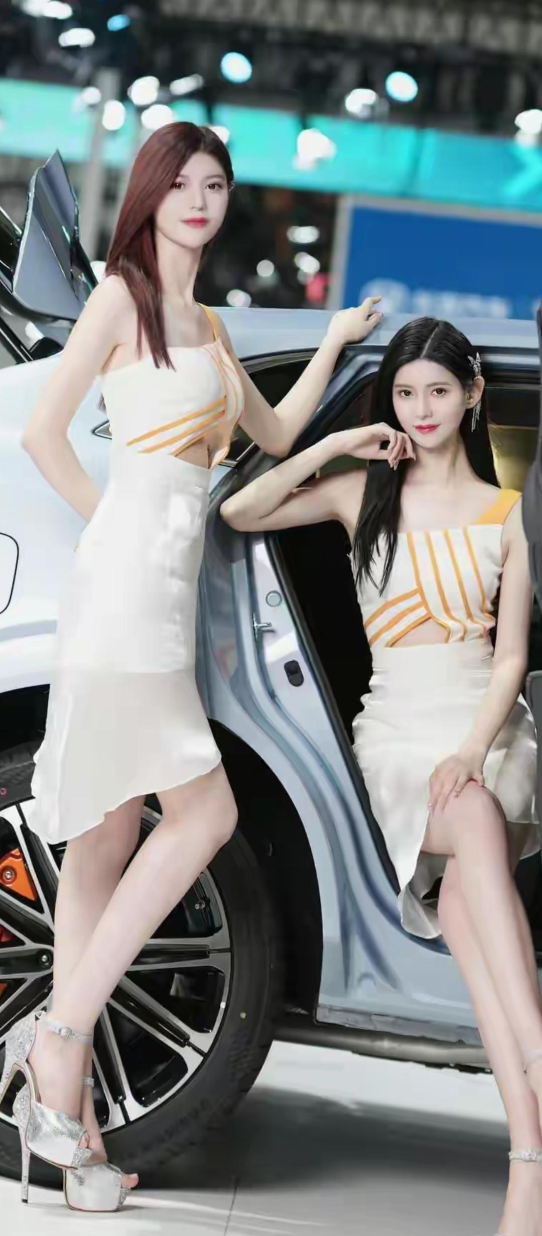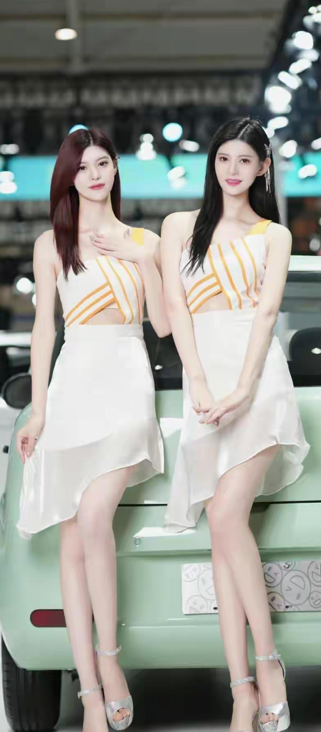 姐妹花车边合影,惊艳的礼服,闪耀的夜晚!💃✨