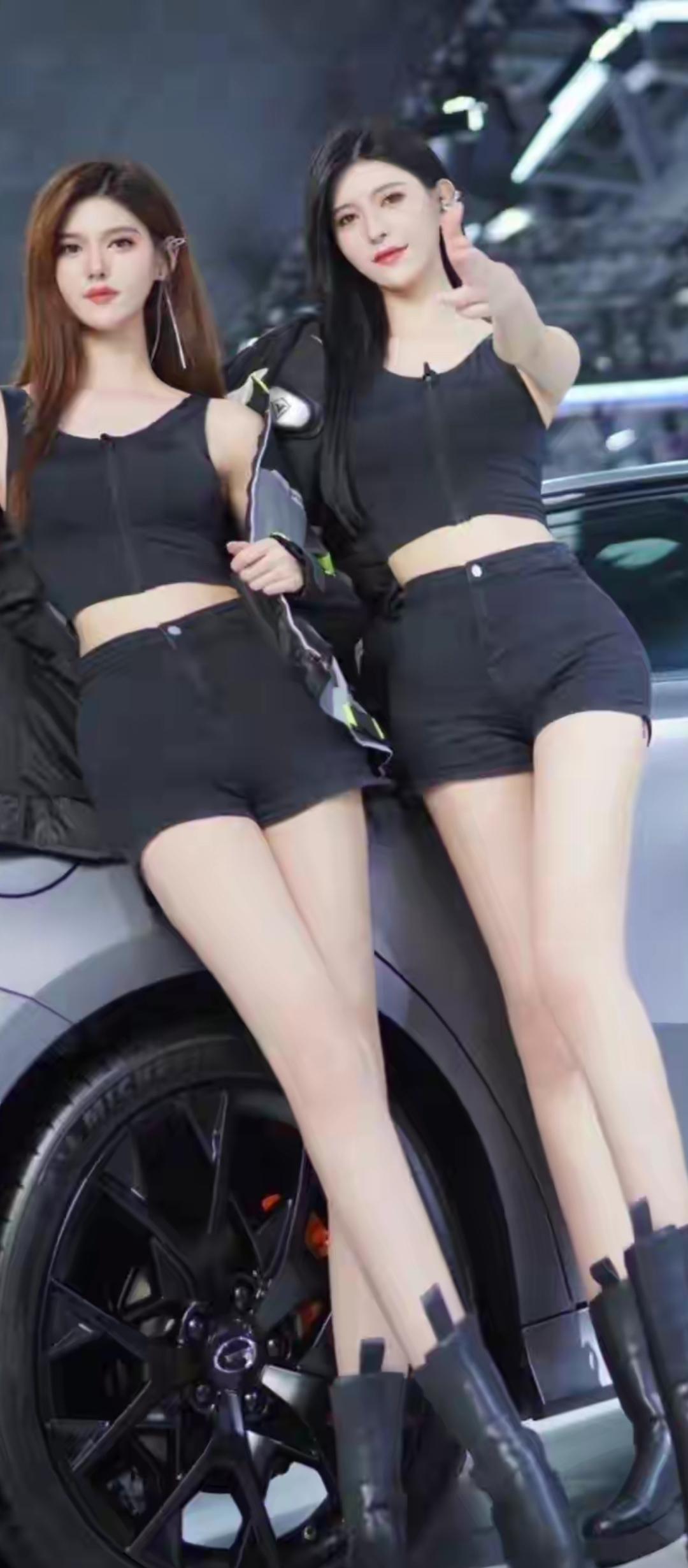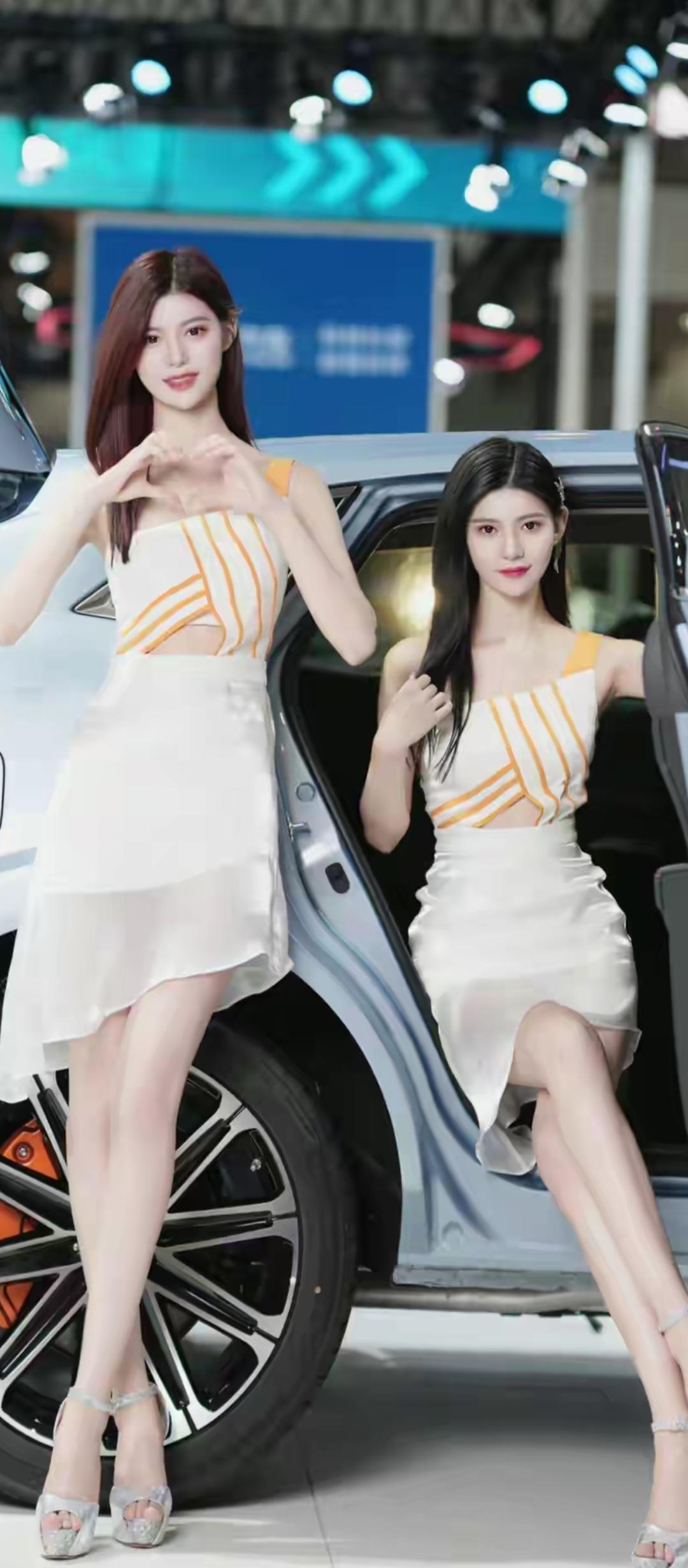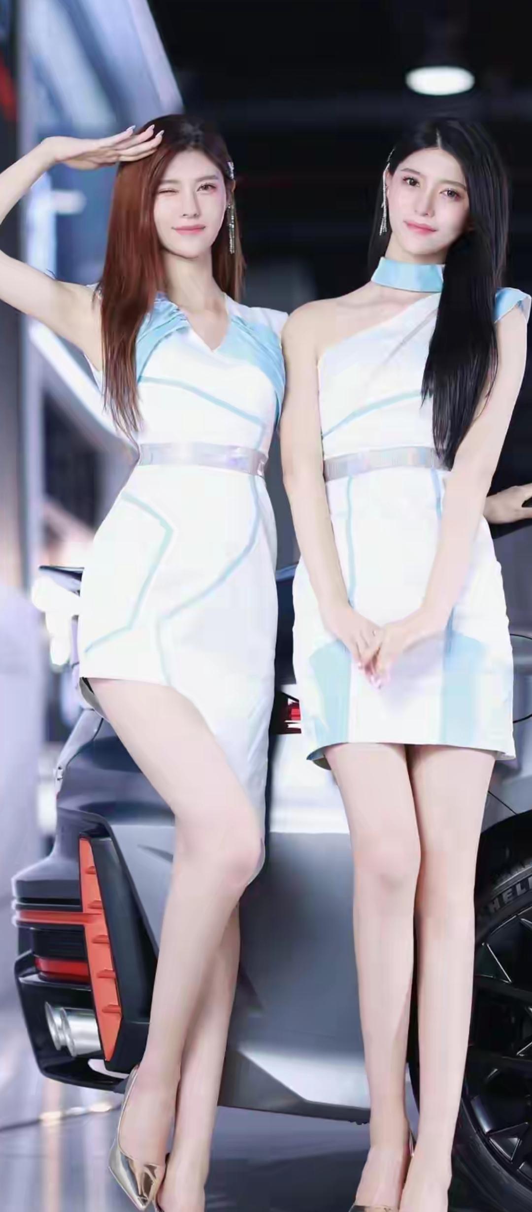 姐妹花车边合影,惊艳的礼服,闪耀的夜晚!💃✨