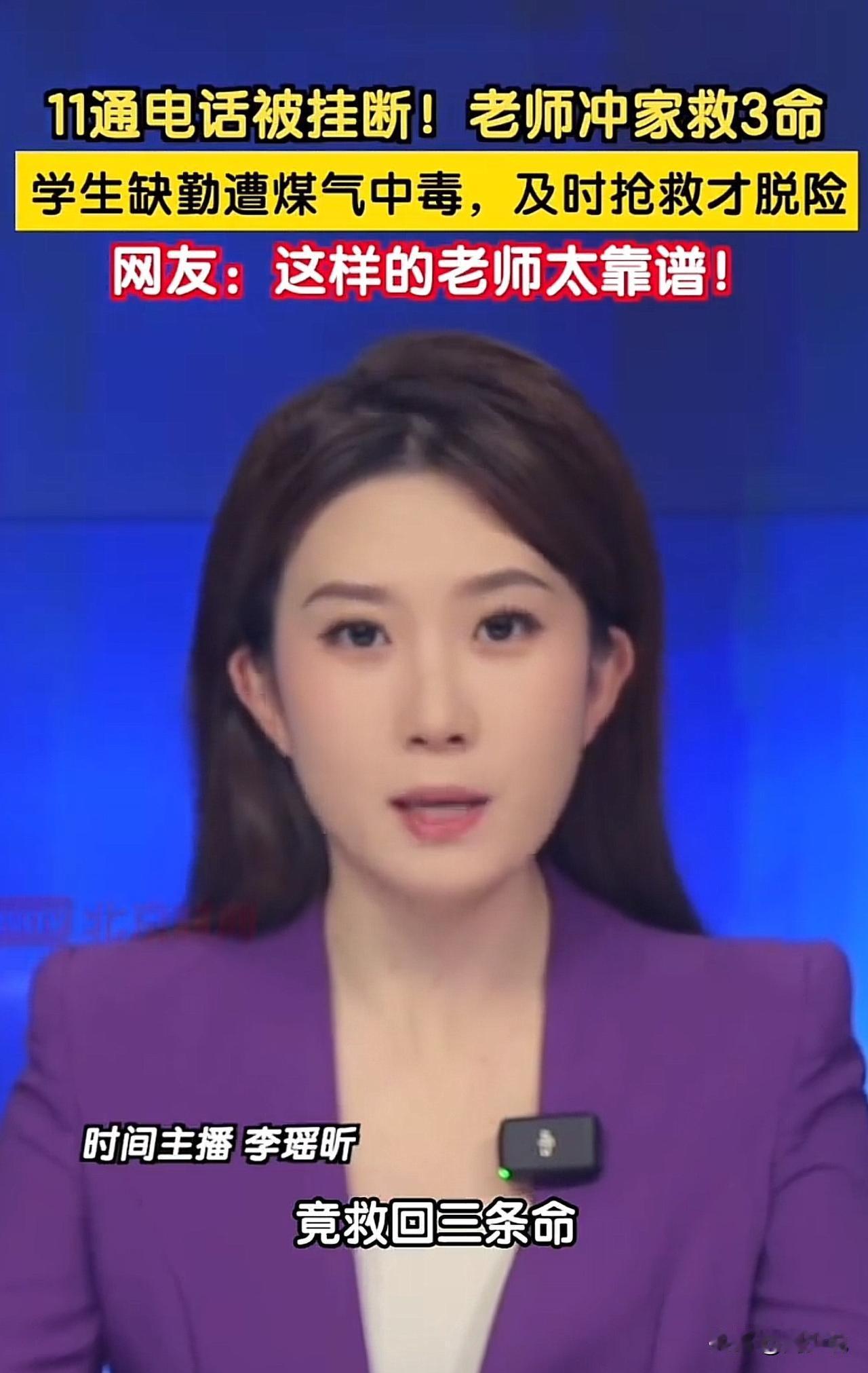 #11通电话被挂 老师冲到学生家救人#“这样的老师太靠谱了!”近日,某学校一学生无故缺勤,老师接连打11通电话都被挂断,反常举动让她心头一紧,当即放下手头事赶往学生家中,推开门的瞬间,眼前场景让她脊背发凉! 原来当天上课,这名学生迟迟未到,老师多次致电家长均无人接听,担心出事便火速赶去家访。进门后发现一家三口因煤气中毒瘫倒在地,已陷入昏迷,情况危急。 老师没敢耽搁,立刻呼救并联系急救,全程守在旁协助,争分夺秒配合医护人员转运救治,最终三人都脱离危险,成功脱险。 此事情曝光后,众多网友纷纷称赞:“这老师太负责了!多份细心救了三条命,比亲人还靠谱!” 也有网友表示:“还好老师没放弃打电话,不然真不敢想后果,这样的好老师值得敬重!” 在周少看来,这位老师11通电话的坚持,藏着对学生的满心牵挂,危急时刻的果断施救,更是守住了三个家庭的希望。 这份超出职责的担当,没有惊天壮举,却满是暖心力量。正是这份细心与坚守,让平凡的岗位闪着光,这样的教育者,值得所有人点赞与铭记。#寻美三湘# #长沙新朋友#